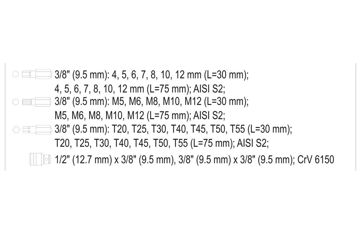 Made of the highest quality S2 tool alloy steel, which is characterized by high hardness HRC 58 62, uniform, fine-grained material structure, resistance to torsion, high tightening torque, excellent hardening.