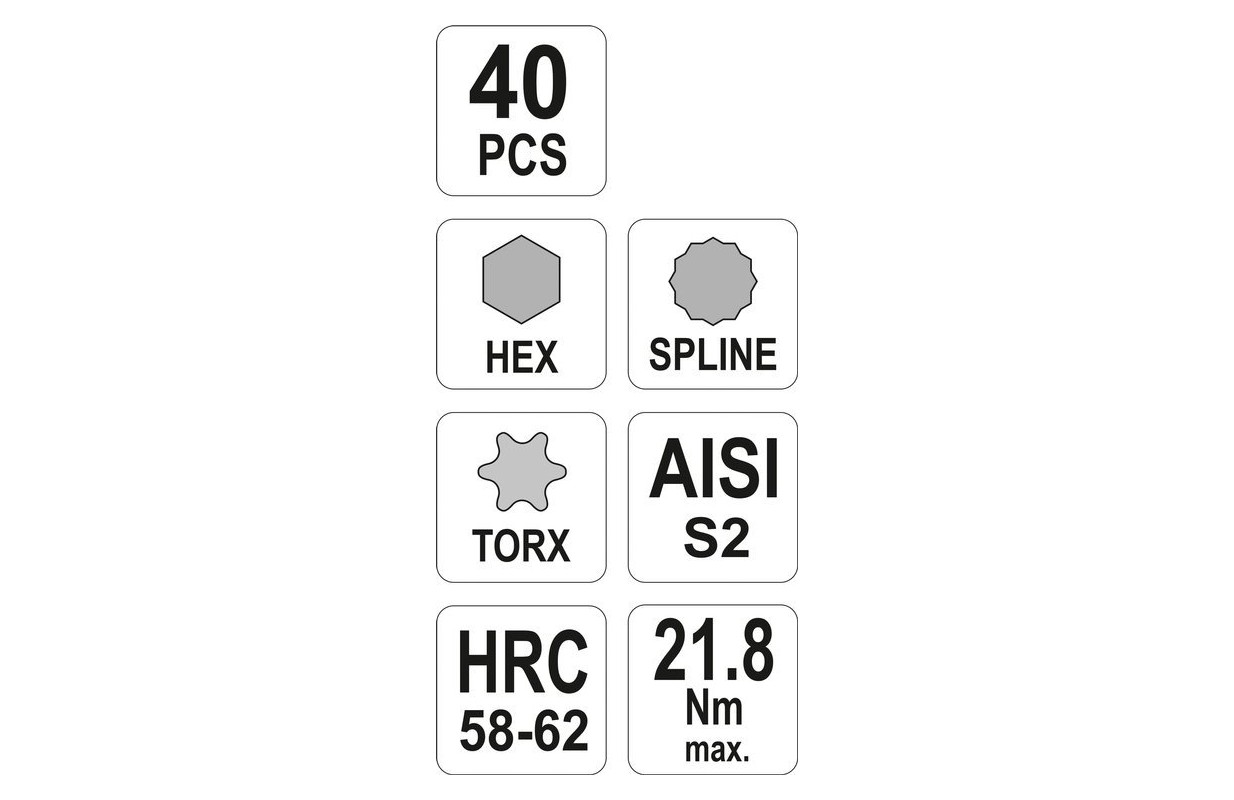 Screwdriver bit set torx, hex, spline 40 pcs (YT-0400)