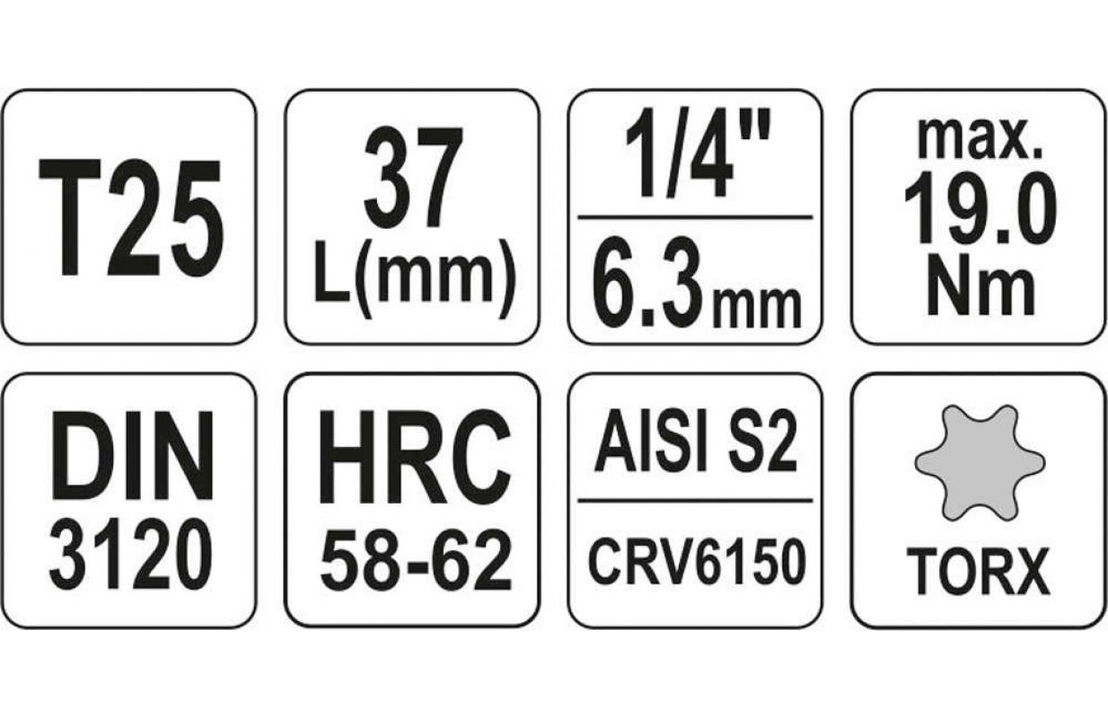 Socket bit torx 1/4" t25 l37mm (YT-04305)