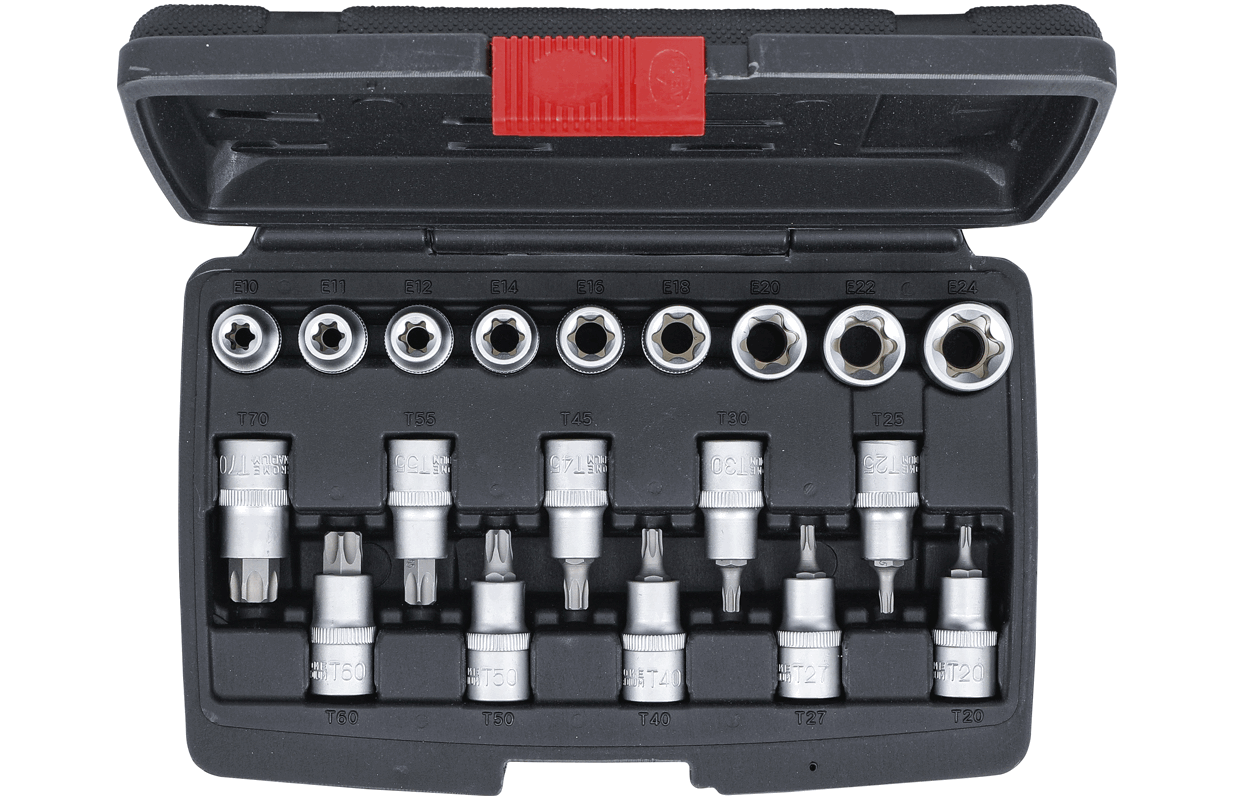 Bit Socket / Socket Set | 12.5 mm (1/2") Drive | T-Star (for Torx) / E-Type | 19 pcs. (95100)