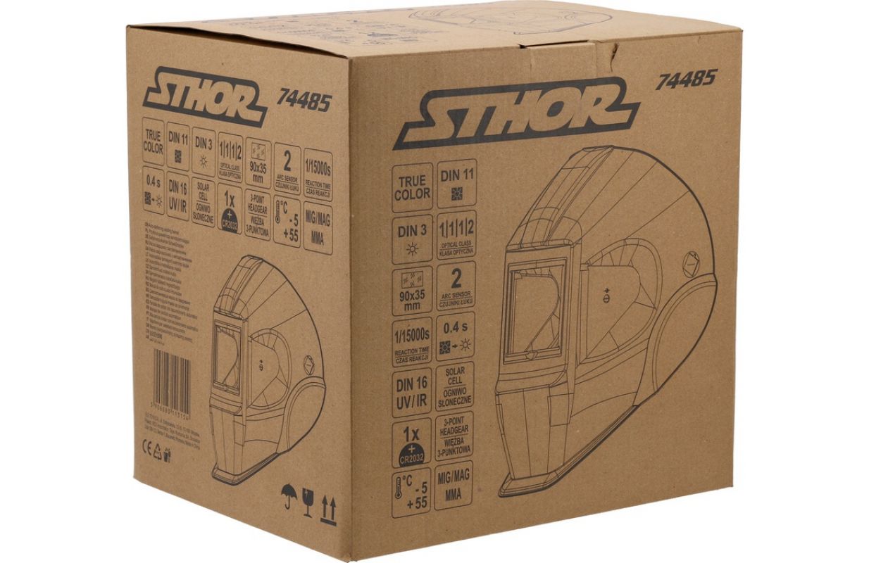 Welding helmet equipped with a self-darkening filter in TRUE COLOR technology, protects against electric arc light, UV/IR rays up to DIN 16 and spatter. Unlike filters with a traditional self-darkening filter, it does not change the perception of colors. The welding source is visible in the full palette of colors.