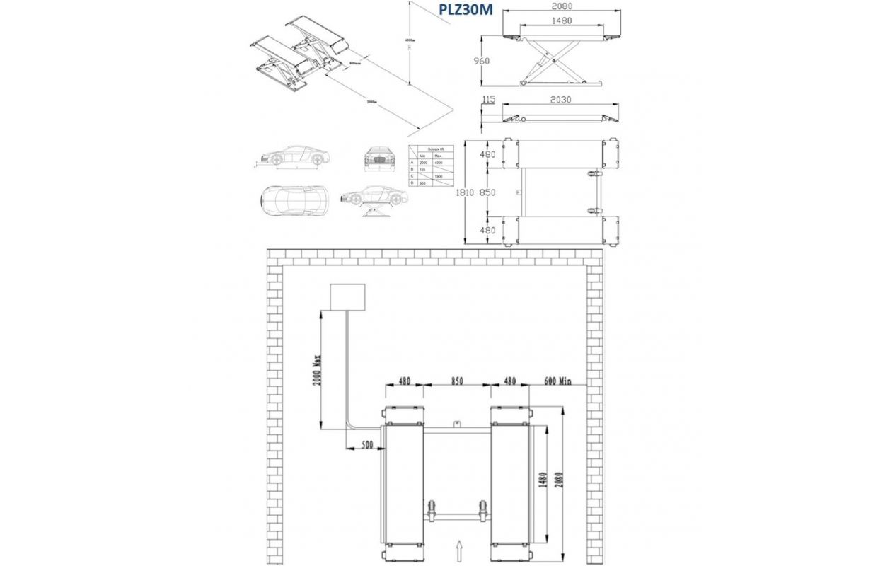 Hydraulic scissor lift with electromagnetic locking, 3.0 t - 3.0 t, 220 V (PLZ30M220V)