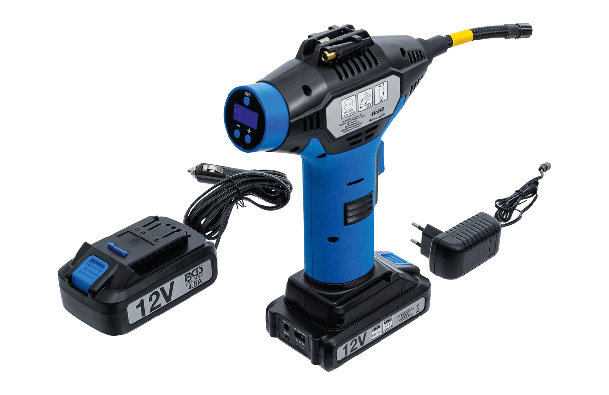 • digital LCD display for setting the desired tire pressure