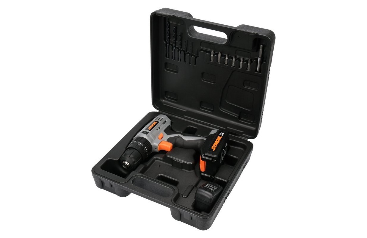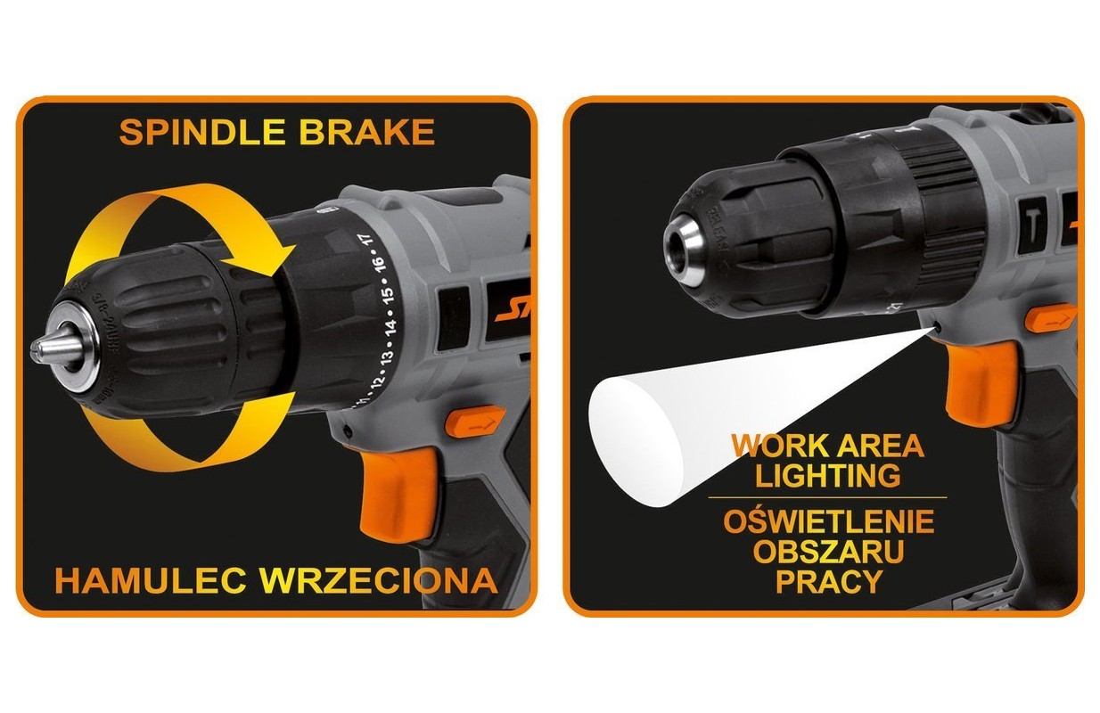 Stroke Two-speed screwdriver, whose high torque in 1st gear is enough to drill into metal with a spiral drill with a maximum diameter of 12 mm.