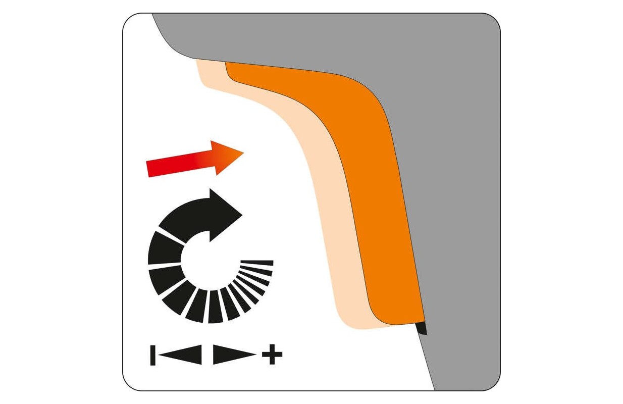 In 2nd gear with the percussion function activated, it performs holes in brick up to 10 mm diameter and in concrete up to 6 mm diameter.