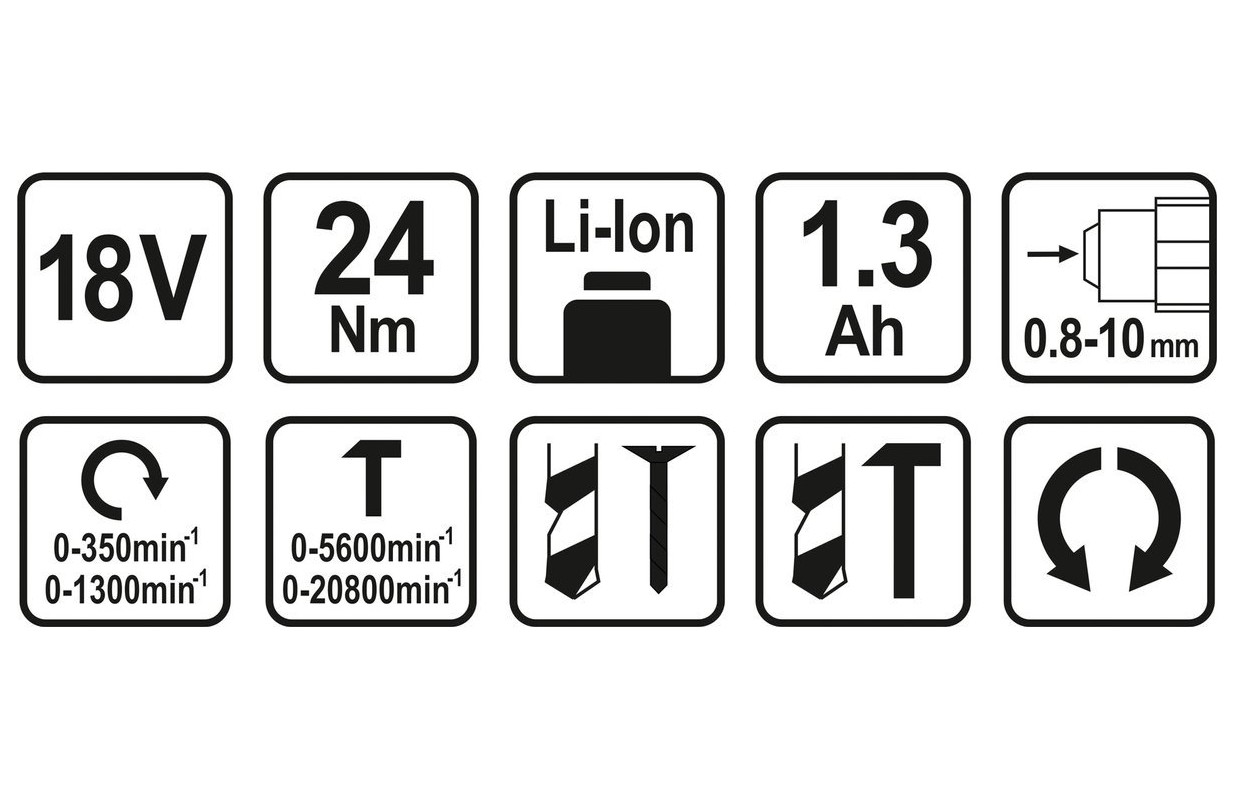Two-speed drill/driver with 18V impact + 1 x 1.3Ah Li-Ion battery