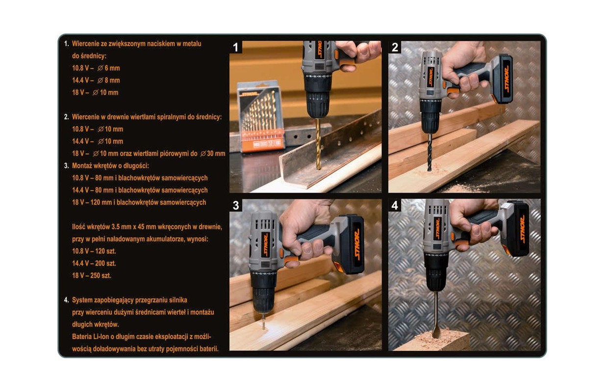 Excellent for drilling in metal and wood and driving screws. It will be useful for assembly work in the workshop, and thanks to its good balance, it is very useful for bolting furniture. The rigid rack and pinion housing and high-quality handle, combined with the strong and durable gearbox, allow drilling and screwing with high pressure on the device.