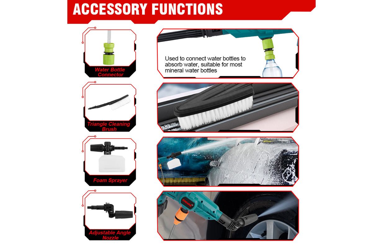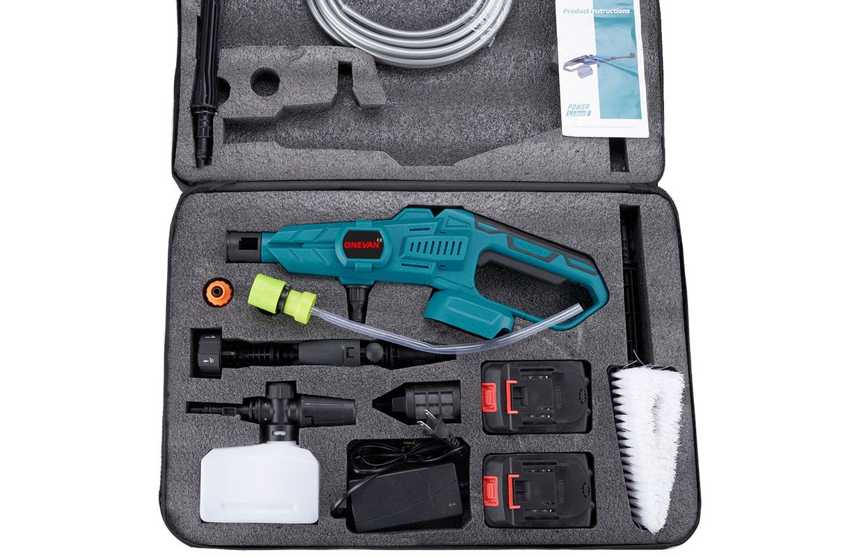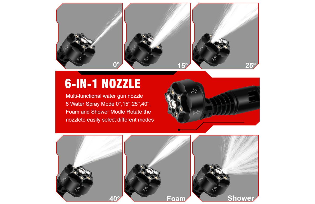 1 x Washing Machine 1 x 5M water pipe 1 x Adjustable Angle Nozzle 1 x 6-IN-1 Nozzle 5 x Accessories 1 x User manual 1 x Bag 1 x Charger 2 x Battery