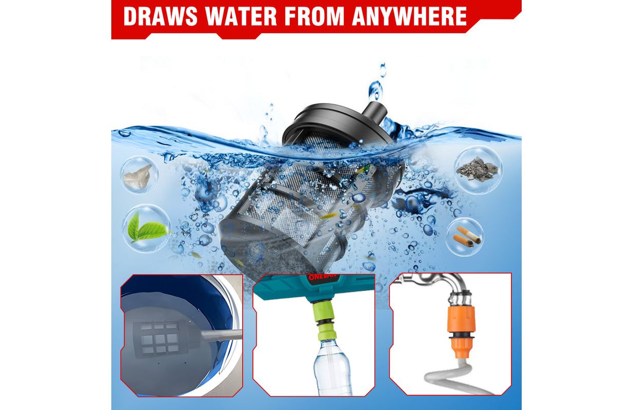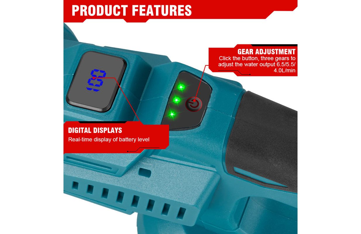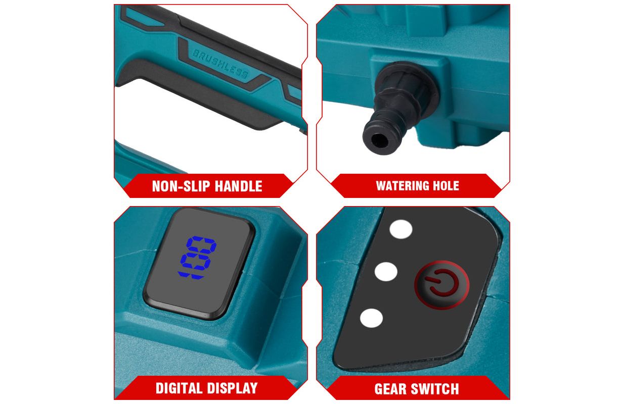 ● Cordless design, powered by Li-Ion rechargeable battery, convenient for outdoor working ● Flexible use, easy to clean. ● 9000 mAh large capacity lithium battery , convenient for outdoor use ● Lightweight and convenient, long battery life. ● User-friendly comfort handle, long-term grip is effortless. ● You can clean anywhere there is water, including using a bucket, bottle, stream or pool. ● Stainless steel fine screen, high efficiency and deep filtration, deep double filtration of impurities in water, long service life of protection pump.