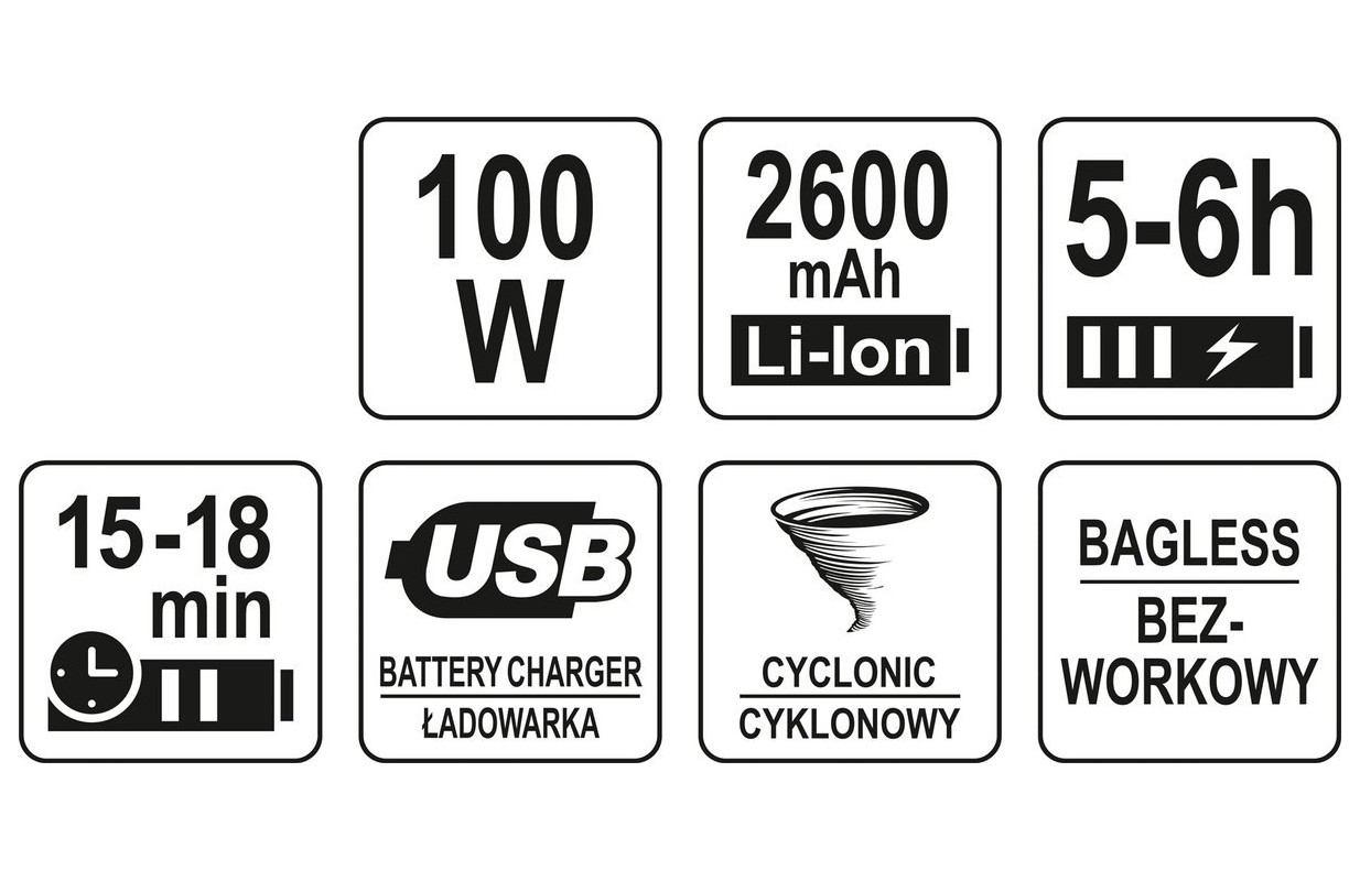 Rechargeable battery - the combination of very high power and long operation is possible thanks to the use of up to 3 lithium-ion batteries with a total capacity of 2600mAh. So we lose neither power at the expense of the length of work, nor the length of work at the expense of suction power