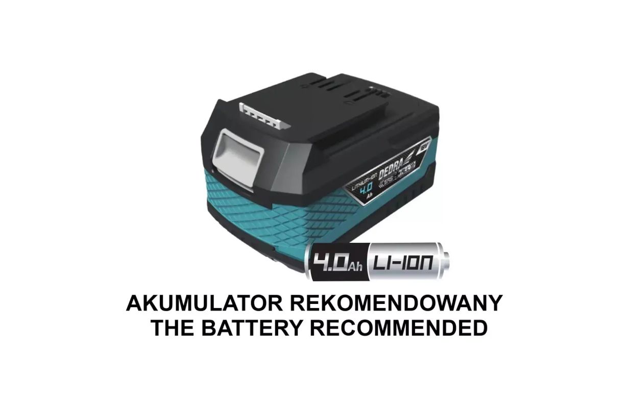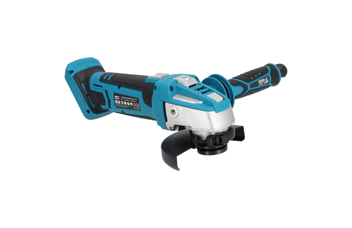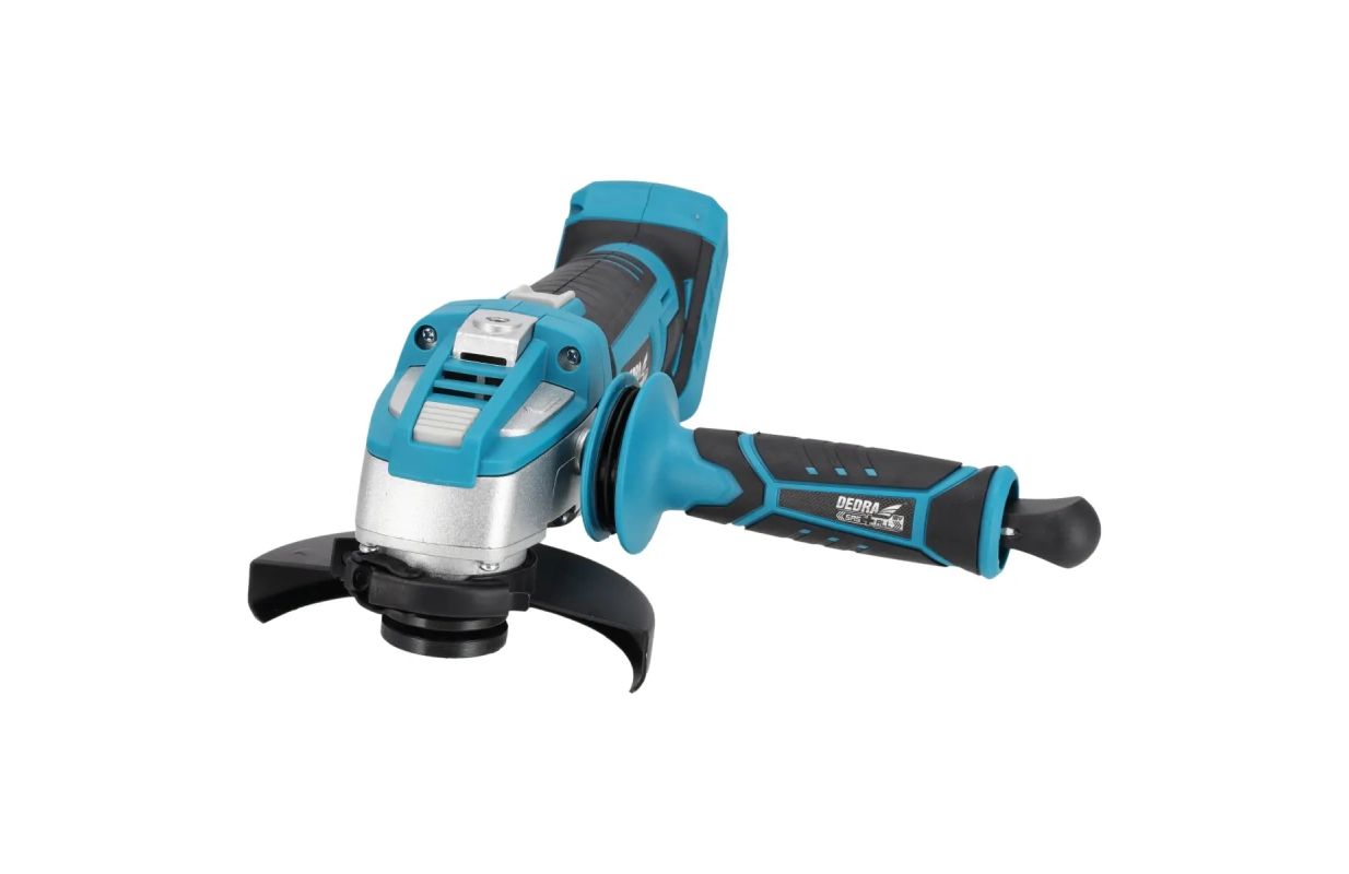 This tool is designed for cutting and grinding. The sander's motor reaches a speed of 9,500 rpm and is compatible with 125 mm and 115 mm diameter-sized discs. The grinder is equipped with a safety switch to cut off the power when the pressure on the workpiece is too big, which could result in damage to or overheating of the machine. The quick-release blade clamping system, the three-position side handle and the rubber-coated grip make the tool much more comfortable to use. The blade changing key is located in the side handle, so that it is always within the hand's reach when the blade or tool bit has to be changed. The housing is made of fiberglass reinforced nylon for increased resistance to mechanical damage and UV radiation. Ergonomics and comfort are improved by the low weight of the unitand the rubber-coated handle. The recommended battery for the cordless angle grinder is 4.0Ah DED7034.