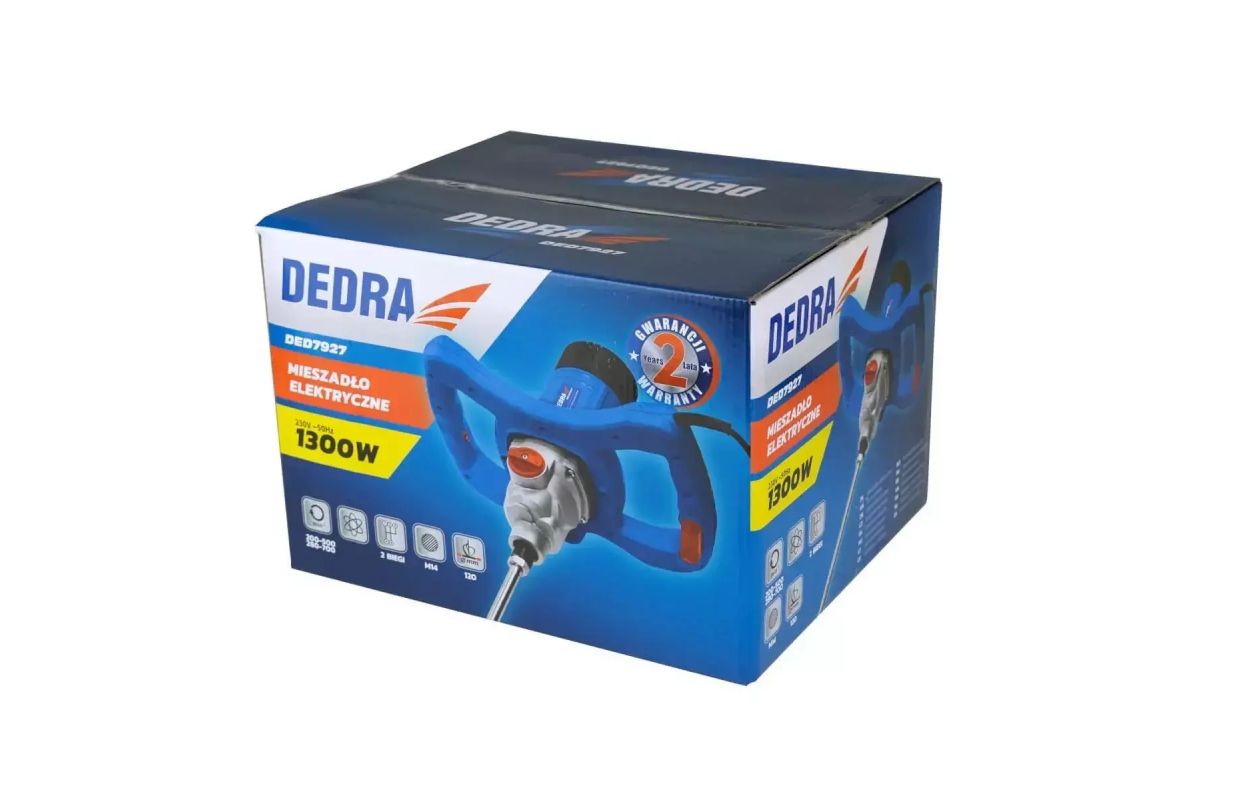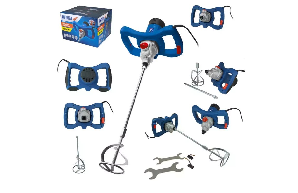 The DED7927 electric mixer is designed for mixing liquid materials (paints, primers) and loose materials (adhesives, mortars, plasters).