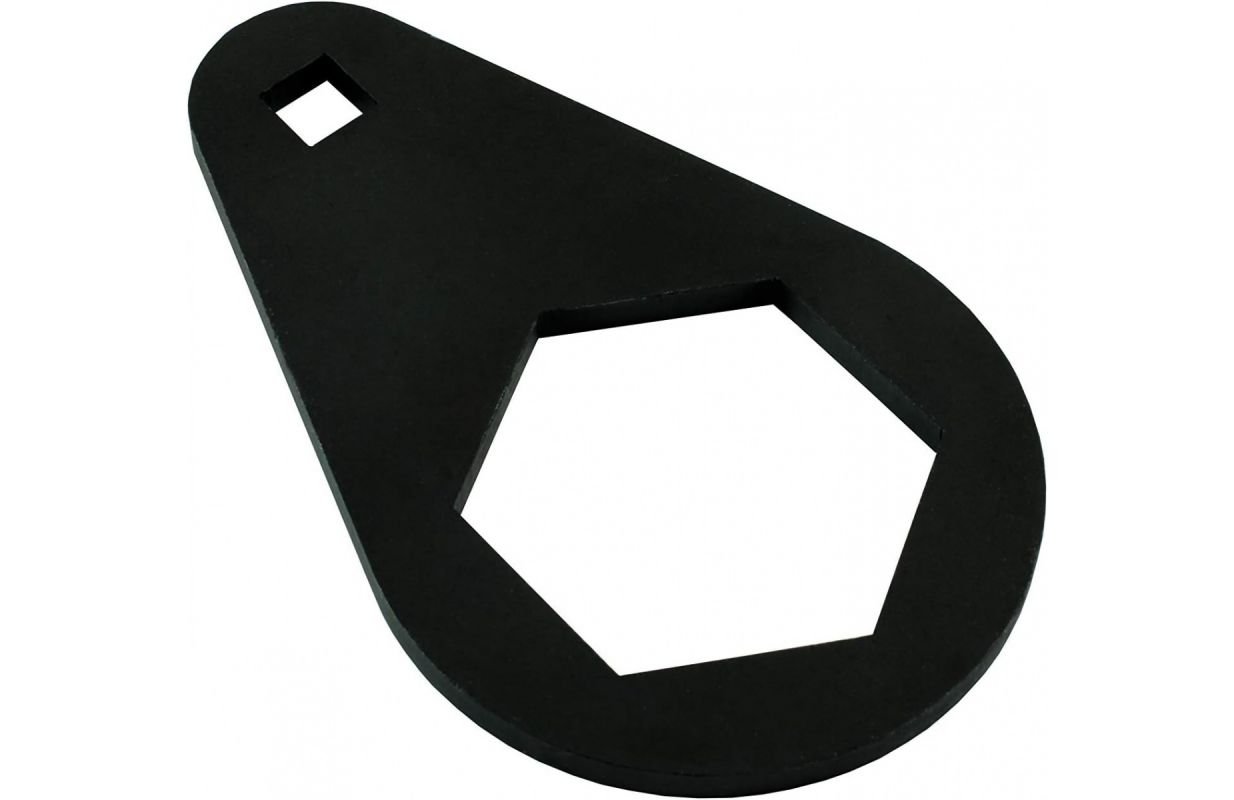Tool for fixing the compressor clutch pulley. Designed to hold the pulley stationary so that the retaining bolt can be removed. It is installed on the large hex of the air conditioning pulley, providing access to the central fastening bolt.