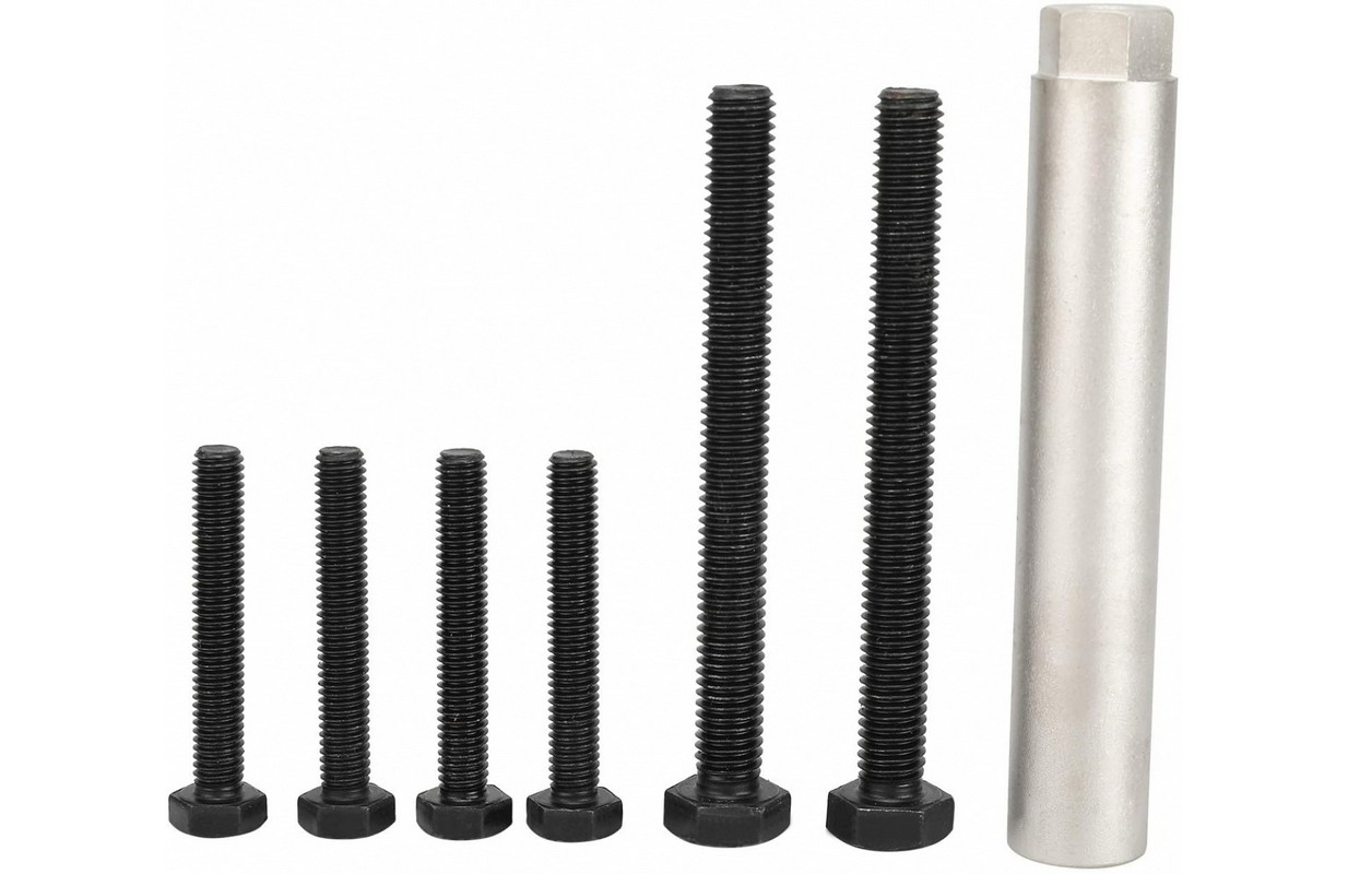 • Set the camshaft to the TDC position and adjust the VANOS angle. • Applications: BMW E90 / M3, E92 / M3 with S65 engine. • OEM code: 119 970, 115 290, 115 320, 115 370. 1) 119970 - Sensor (consists of two sensors and screws): for locking the camshafts at TDC. Two sets of pressure gauges are required for timing adjustment. 2) 115290 - Socket wrench + screw: for installing the bearing neck of the tension rail. 3) 115370 - Installation tool: for installing the VANOS exhaust camshaft gear. 4) 115320 - Centering pin: for locking the crankshaft in the TDC position.
