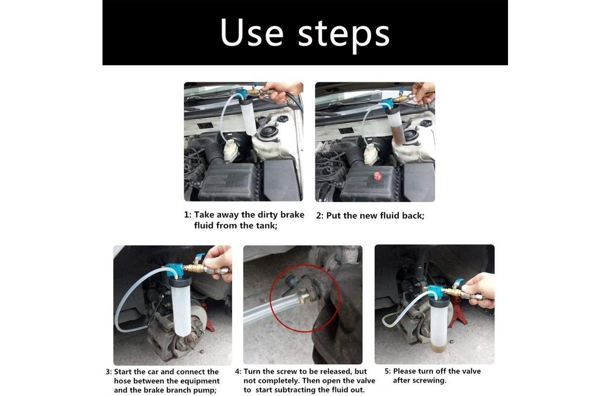 Material: made of high-quality plastic and meat; Durable and portable, non-toxic, odorless, environmentally friendly; long service life; * Ease of use: easy to operate and connect, replaces the traditional tedious and exhausting method of oil change, so one person can complete this brake fluid replacement job. Very convenient and economical spare parts; * Purpose: universally suitable for many types of passenger cars, trucks, and engineering vehicles; Replacement of brake fluid / clutch oil / Miann pump or auxiliary pump. * Time and labor saving: this brake fluid extraction kit can save you the time needed to press the brake pedal back and forth. Moreover, the operation performed by one person can save your labor costs; * The kit includes: 1 brake fluid replacement tool kit (including 2 joints + 1 hook)