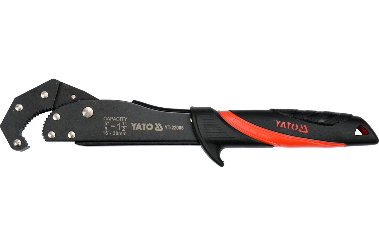 His design allowsto work in the range from 16mm to 38mm. Thanks to this, the YATO quick-action wrench successfully replaces the entire set of open-end and adjustable wrenches, reducing both the costs associated with their purchase and the space required for their storage.