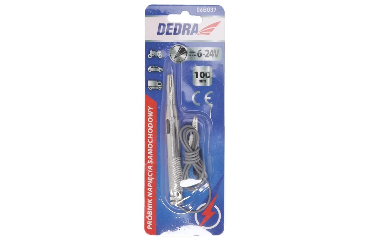 The Voltage Tester is a must-have tool in every DIY workshop and driver's toolbox. Thanks to its wide voltage tolerance range, you can check the power supply of 6V, 12V and 24V systems such as motorbikes, cars and lorries. It is ideal for checking the functionality of a car's safety devices. The handy size makes the tester easy to handle and comfortable to use. The metal casing ensures a long service life and the knurled surface improves the grip. The cable is plugged into the rear connectors and terminated with a toggle, which is connected to earth and the tester tip is used to touch the components to verify that they are energised. The light bulb in the handle provides information on current flow.