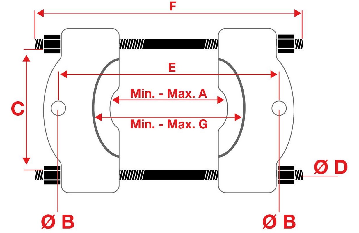 • clamping width (A) min. / max. in mm: min. 29 mm / max. 168 mm