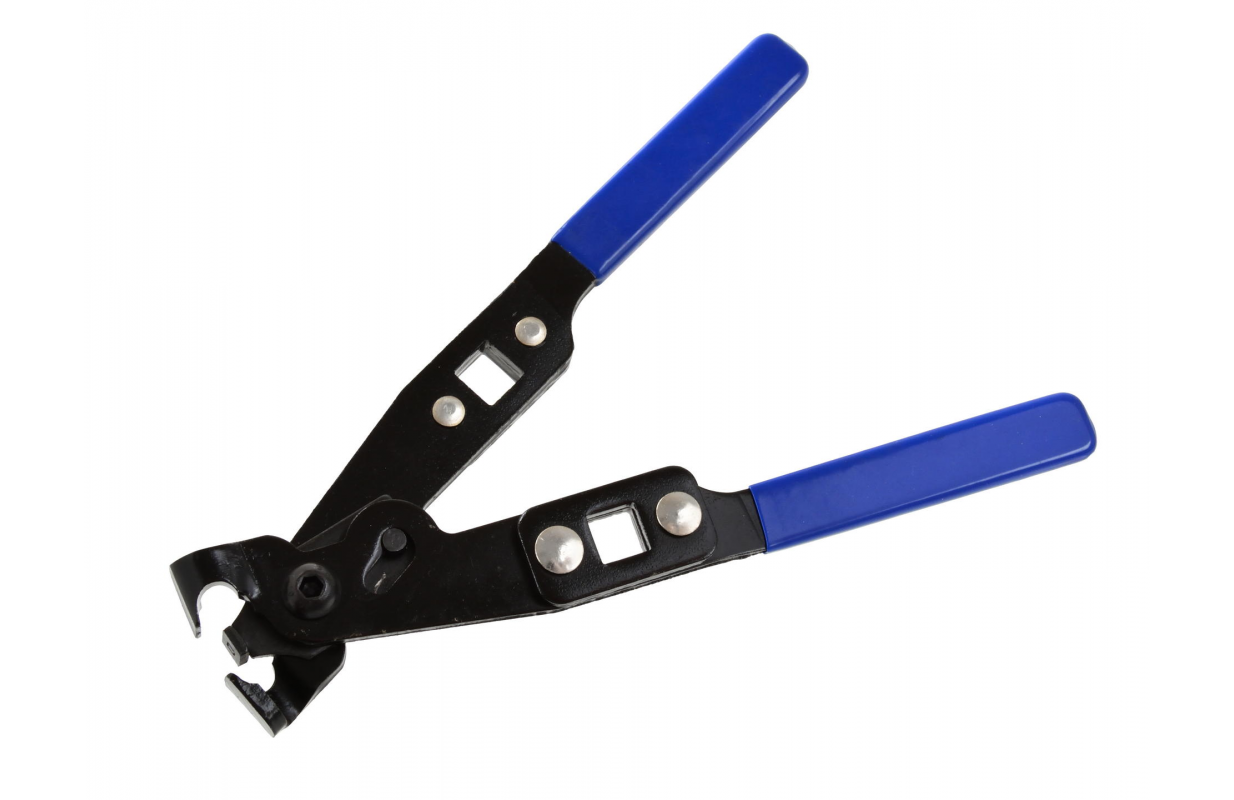 CV Boot Clamp Pliers suitable for Oetiker CV Drive Shaft boot securing clips. Plier's plate presses a flat on the top of the clip so that it forms the spring loop correctly.