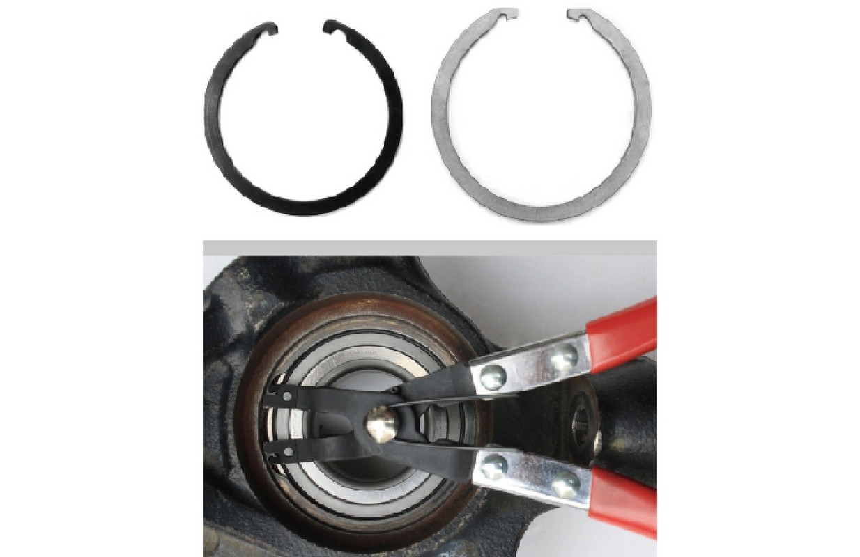 The special design of the pliers' tips allows for easy removal and replacement of the hub bearing retaining rings without lugs.