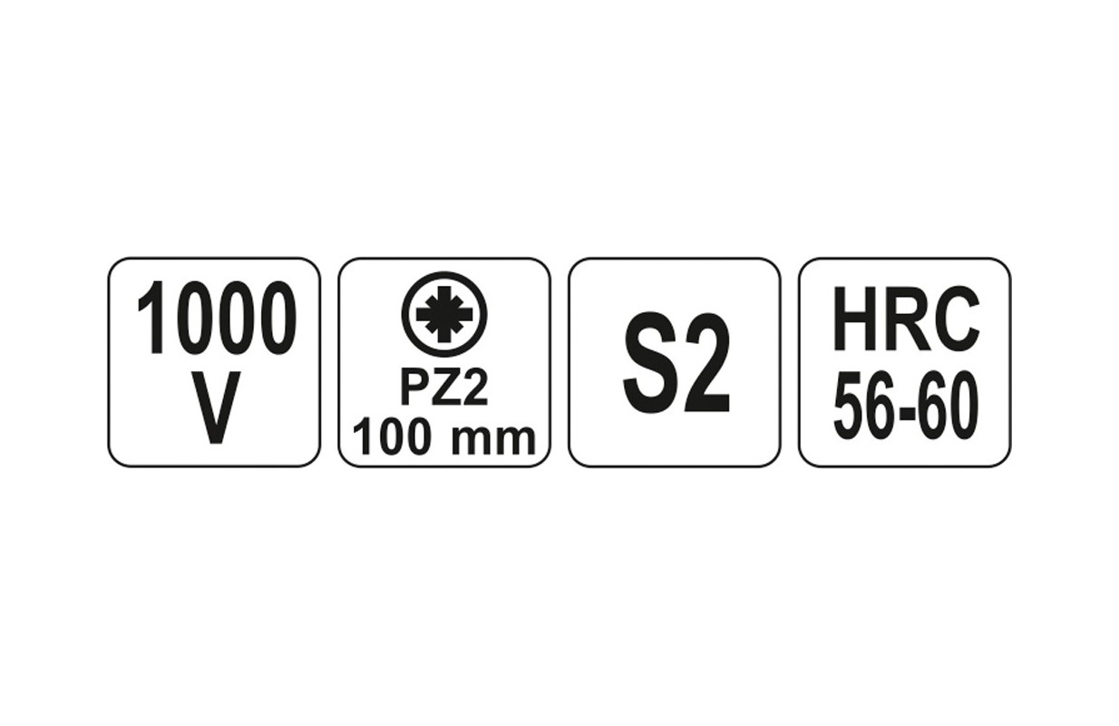Cross head screwdriver YT-2826 with VDE insulation, made of durable S2 steel with hardness HRC 56-60.