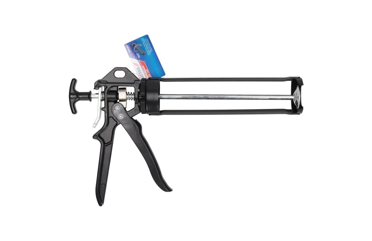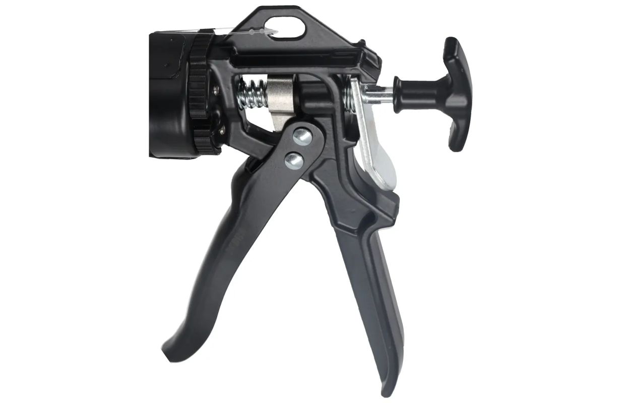 Tube squeezer model 1201 -04 with rotatable tube. It can be used to press out all types of silicone, adhesives or compounds. Suitable for tube volumes of up to 330 ml. The rotatable tube makes it possible to work even in hard-to-reach places.