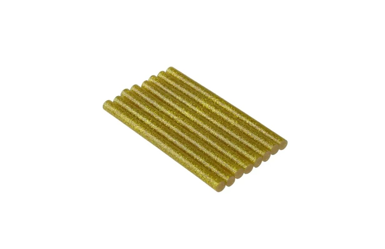 Universal glue for use with glue guns. The adhesive is used for bonding various materials such as wood, plastics, cardboard, glass. It is often used by fitters and service technicians as well as do-it-yourselfers. The adhesive is in the colour gold glitter. Diameter 8 mm. Length 100 mm.