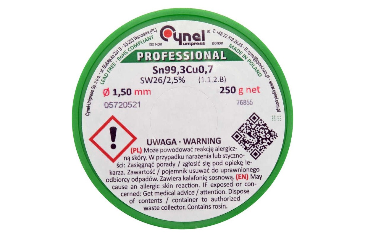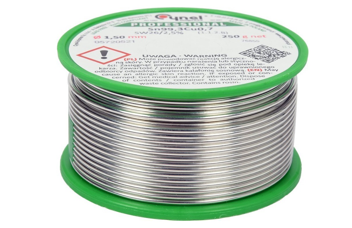 Professional lead-free solder with flux in the core, in accordance with PN EN 29453: 2000.