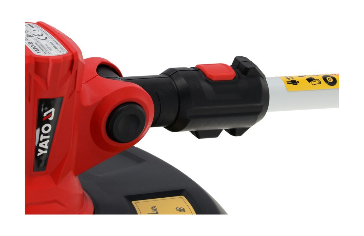 The garden trimmer, powered by the YATO 18V battery system, is designed for garden maintenance, especially for trimming lawns. The used brushless motor ensures high energy efficiency, stable rotation speed, and minimal heating of the drive, which leads to an increased lifespan of the device and an even cut.