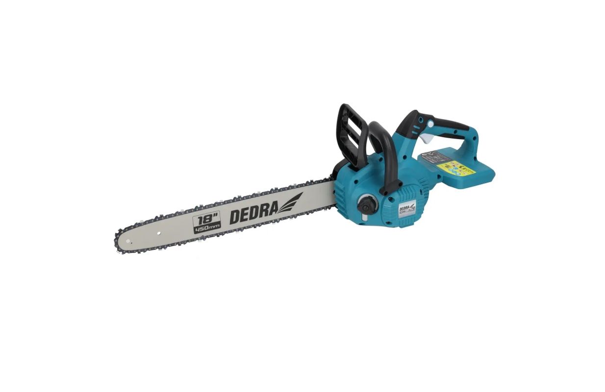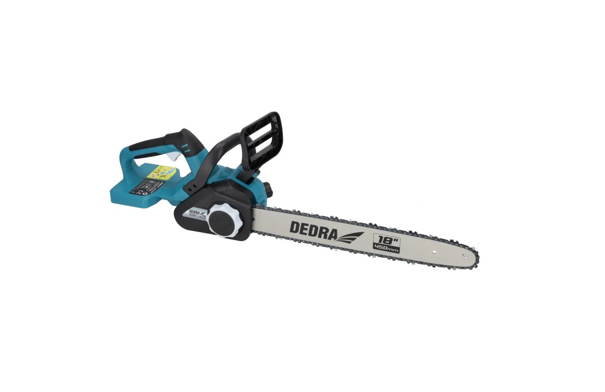 The DEDRA DED7184VA cordless chainsaw is an efficient and mobile tool designed for intensive gardening and outdoor work. Equipped with a 18-inch guide bar, it runs on two 18V batteries from the DEDRA SAS+ALL system. Thanks to its brushless motor and safety features, it offers high work culture, reliability, and user comfort.