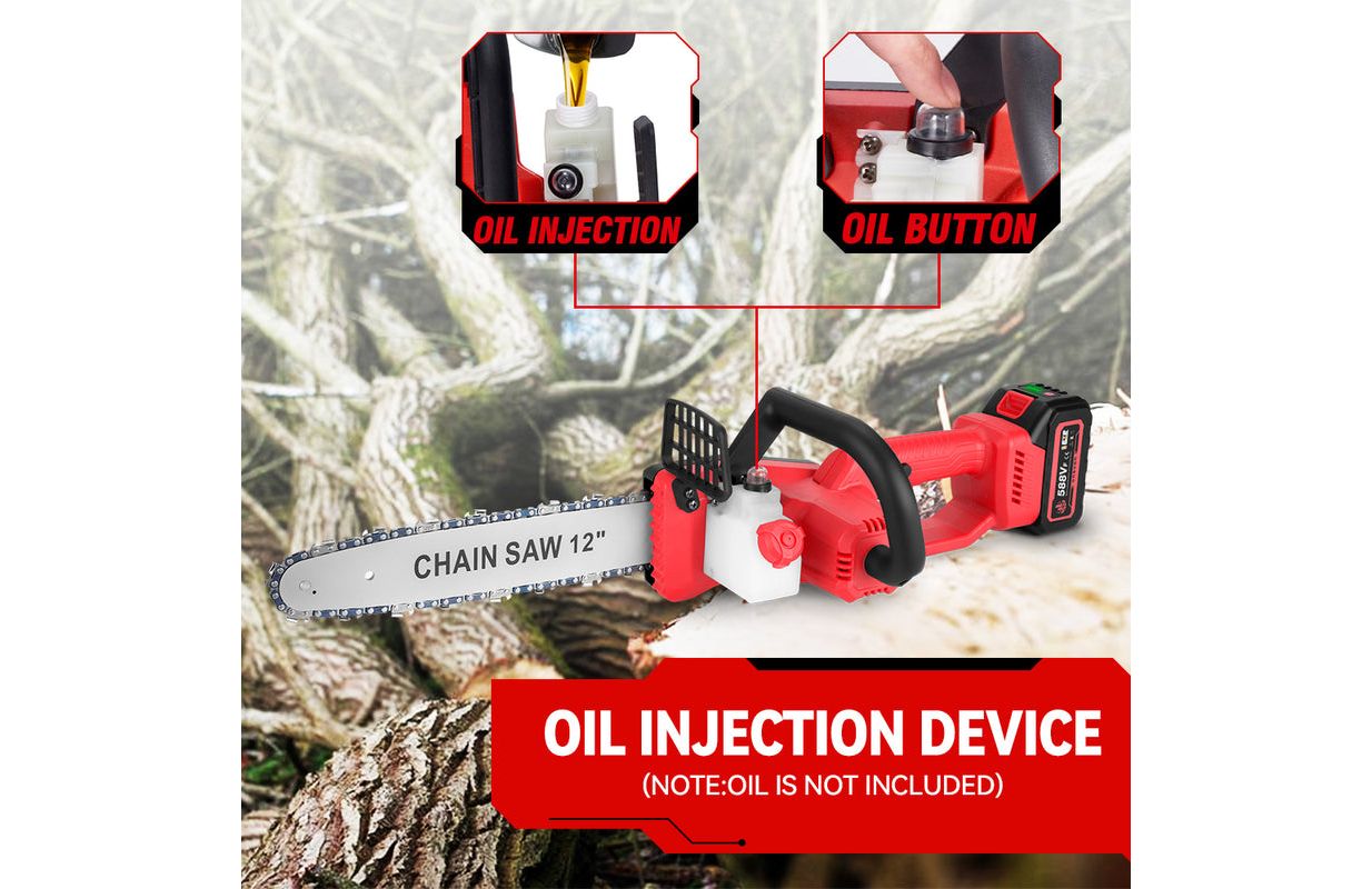 Power: 5000w Material: ABS+Metal Motor: Brushless Motor Guide length: 12 inch Rotating Speed: 20000 rpm Chain Material: High Carbon Steel Battery capacity: 6.0Ah