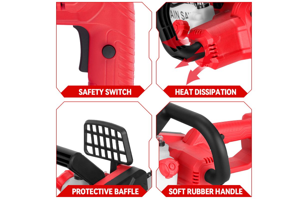 ● Made of fine quality material, practical, easy to operate and use, wide application range, has a long service life. ● Brushless Motor ,Strong power, more output stable than the chain saw modified by the angle grinder. High load so that can not easy to burn. Compared with the brush motor that can only work for 10 minutes at a time and has to stop waiting for cooling, the brushless motor can work for about 25-30 minutes at a time. ● Ergonomic handle design, long time griping will not tired hands. ● Cordless design, easy to carry out and saw the wood. ● The sawchain has been deep quenching by high temperature, with sharping sawteeth, more wear-resistant, smooth cutting. ● With high working efficiency, high positioning accuracy, low noise, which can give you a better using experience. ● With quickly cutting speed, which is practical and low power consumption, high stability and high performance. ● Suitable for Makita 18V Battery.