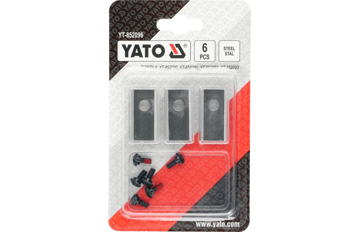 Replacement cutting blades YT-852096 designed for YATO robotic mowers. Made of hardened steel, they ensure even and precise trimming of the grass, resulting in an aesthetically pleasing lawn appearance. Regular blade replacement helps maintain high mowing efficiency and performance, as well as reduces the load on the device's drive.