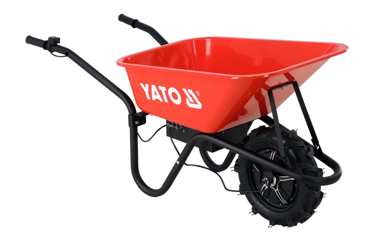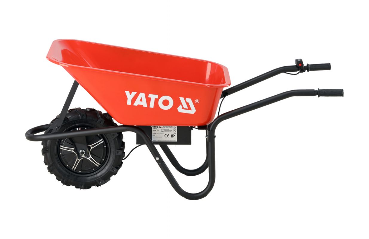YATO YT-86097 electric wheelbarrows are designed for transportation tasks in the garden, on the farm, and at construction sites. The use of a 500 W brushless motor along with a 24 V DC power supply ensures smooth starting, stable power transmission, and high efficiency under load conditions. The device allows transporting loads up to 150 kg without excessive strain on the operator, making daily tasks easier.