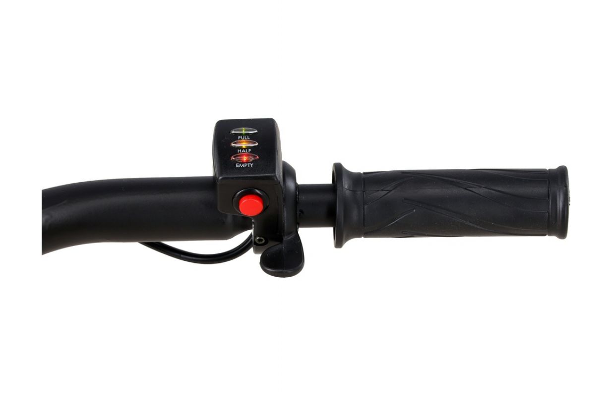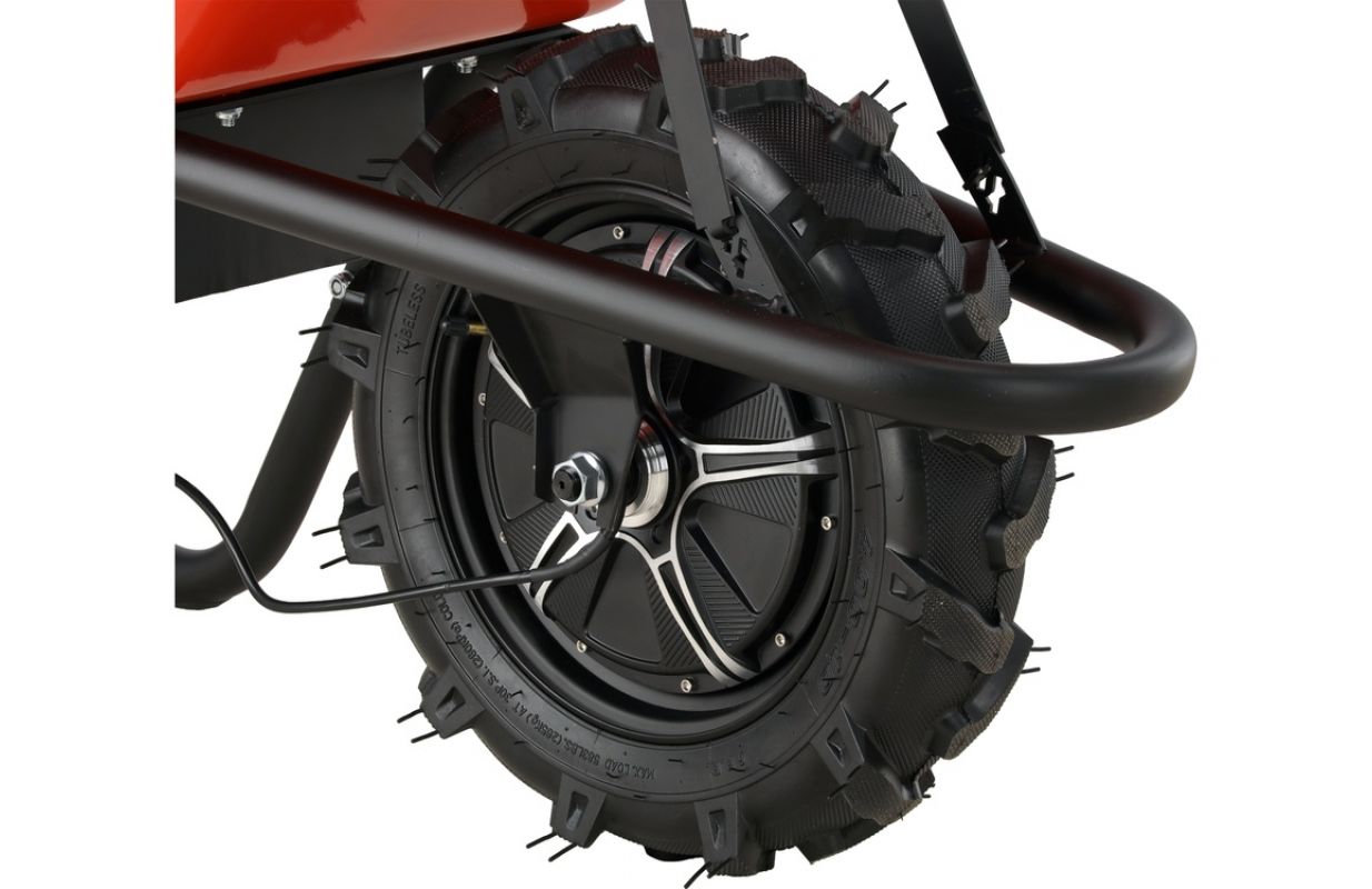 Two lead-acid batteries with a total capacity of 288 Wh allow for up to 8 hours of operation, which practically means the ability to perform tasks throughout the day without frequent recharging. The large wheel with a diameter of 410 mm improves traction and stability on uneven terrain, while the compact, sturdy design ensures balance and maneuverability even under maximum loads.