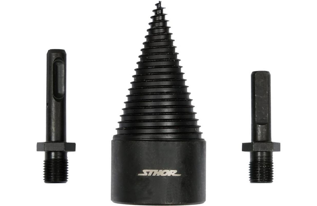 Wood splitting drill. SDS Plus chuck and chuck with three flat surfaces included.