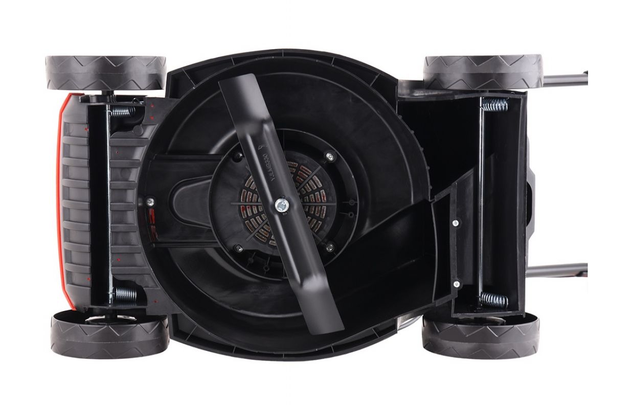 The mower is equipped with durable and robust wheels with a diameter of 14 cm. It has power of 1300W and a speed of 3400 revolutions per minute.