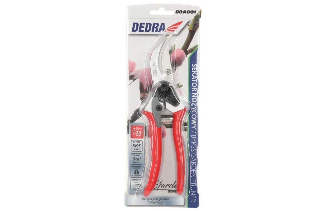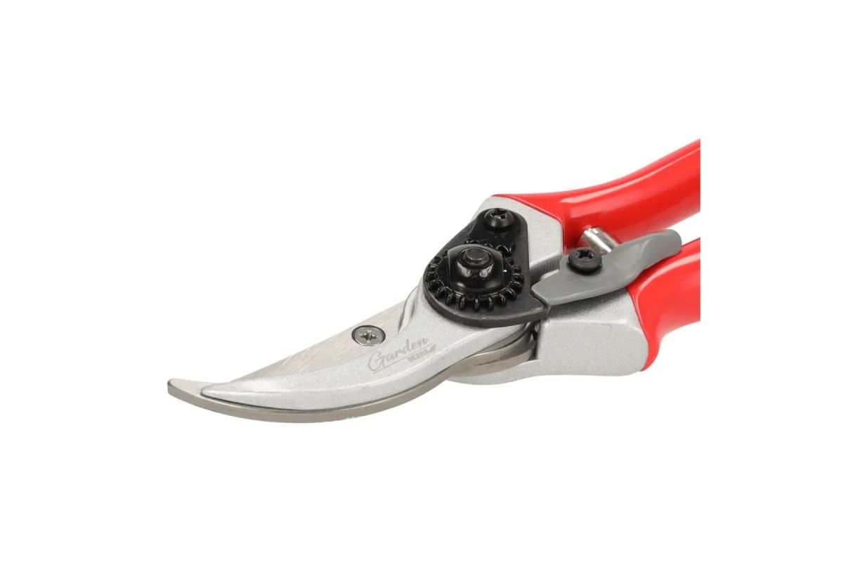 The 80A001 pruning shears are designed for cutting and trimming live stems, branches, and flowers. The SK5 steel blade allows for effective work with stems up to 20 mm in diameter. The steel handle is ergonomically designed and covered with a non-slip material. A simple-to-use lock mechanism enables the blade to be locked and unlocked. The robust spring enhances the smooth operation of the shears. Length: 200 mm.