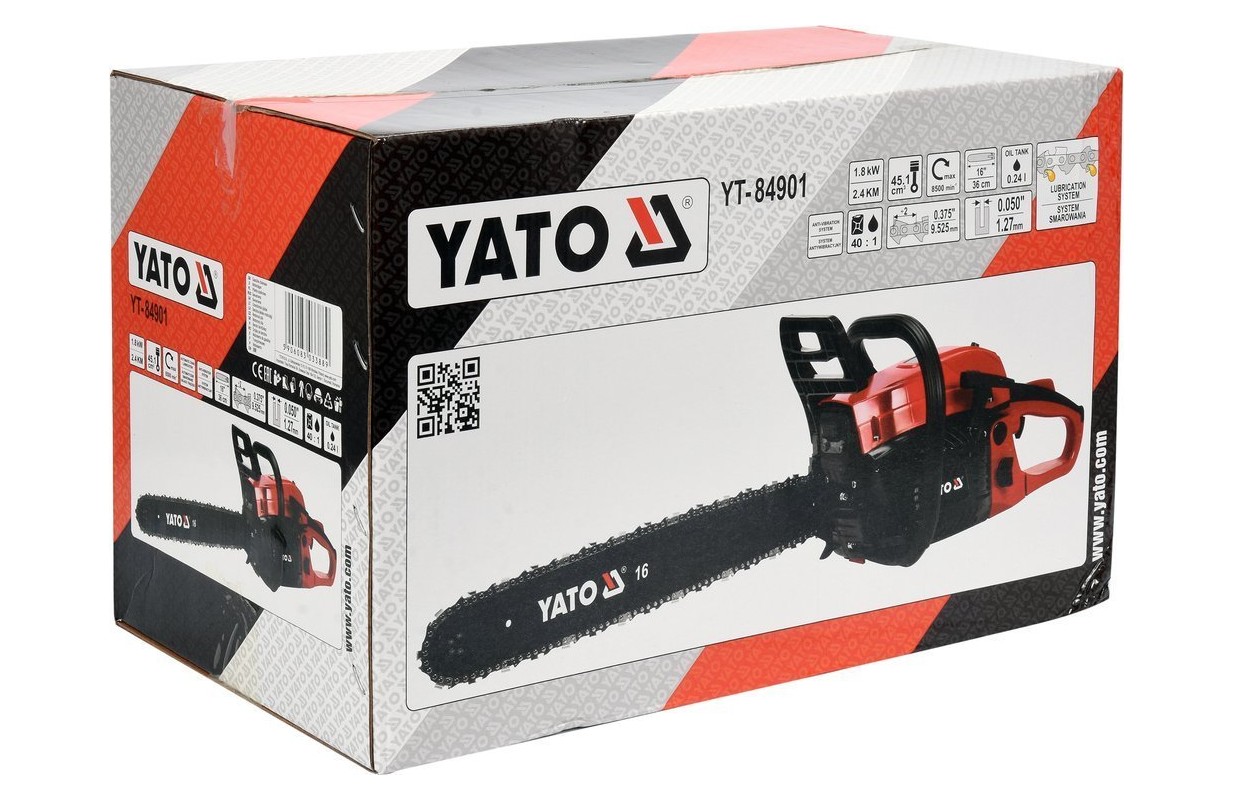 Powered chainsaw YATO with power 2,4 hp is a tool designed not only for home use. The high power of the engine allows you to cut thick stumps and branches and cut trees.