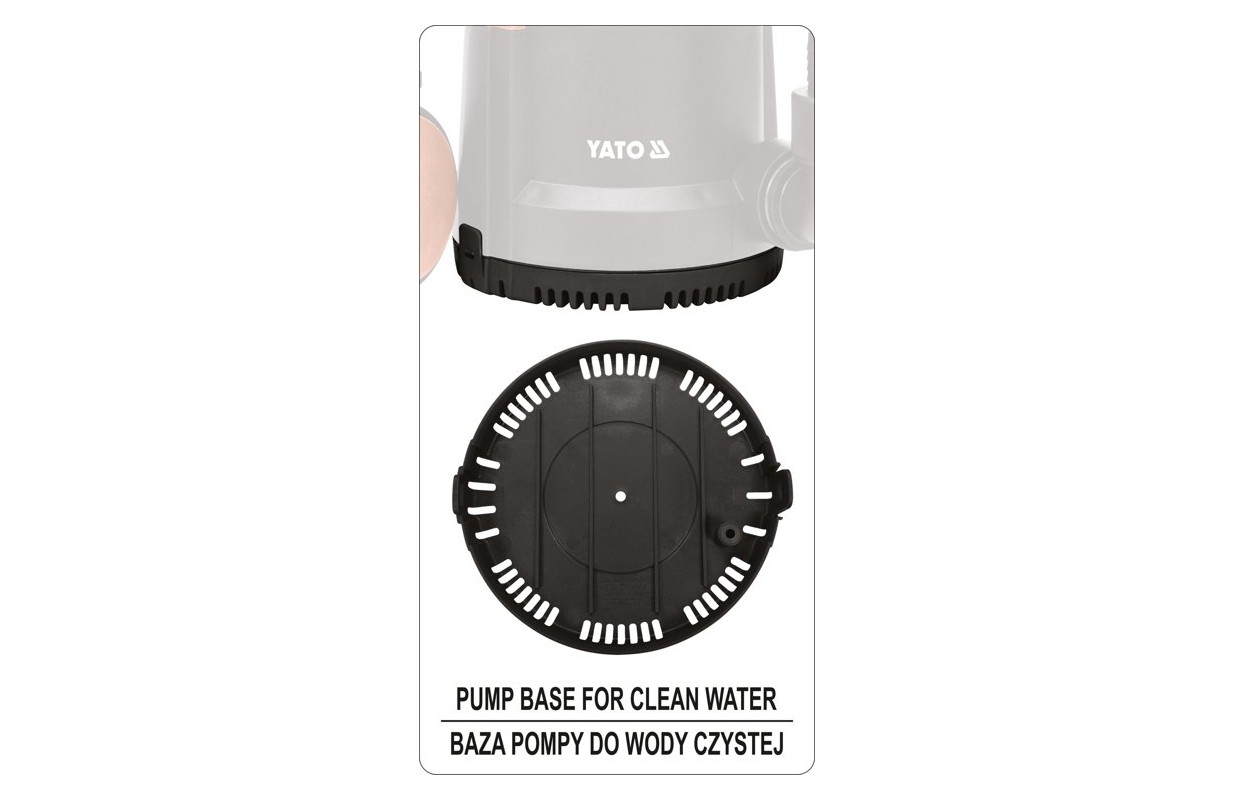 interchangeable pump bases: dirty water pump base – can pump debris smaller than 30mm; pclean water pumping -can pump debris smaller than 5 mm; work through pump bases – pump water down to 1 mm!