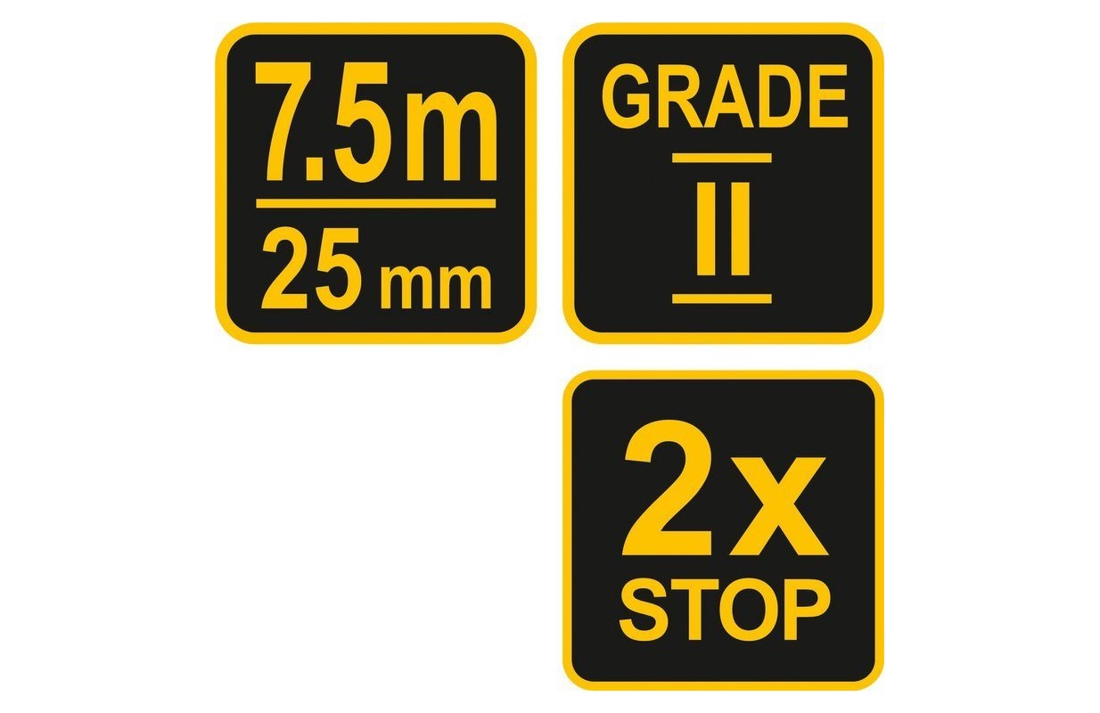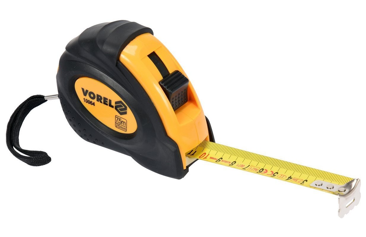• the tape measure is equipped with two locks: a fixed one with a sliding key and a glass one with a button in the base of the measure.