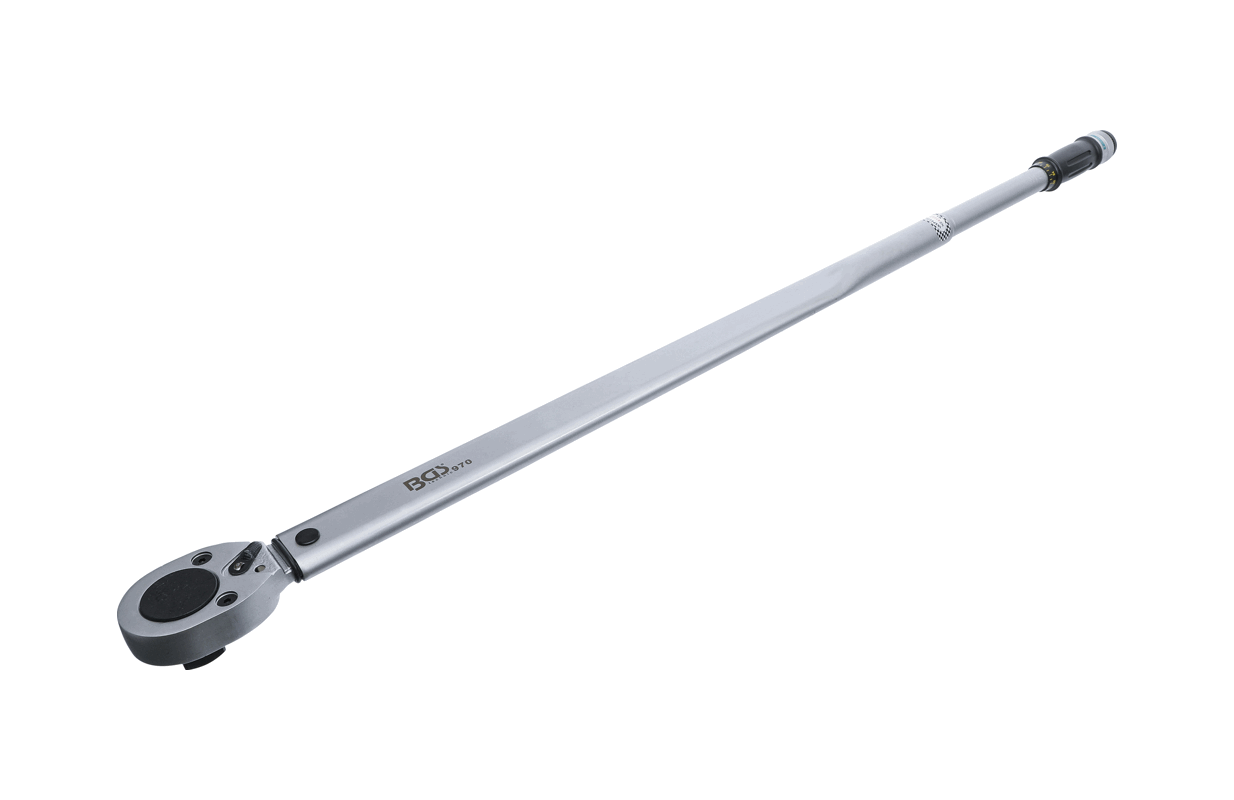 Description reversible ratchet with automatic release via click signal set torque is locked by sliding bush high precision delivered with calibration certificate Technical data Length 1230 mm Min. torque 140 Nm Max. torque 980 Nm Drive profile size, metric 25 mm Output profile External square Effective length 1100 mm Gross weight 9000 g Drive profile size, inch 1 "