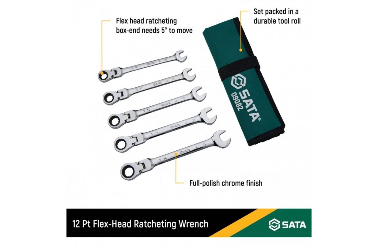 Set of 5 flexible head socket wrenches (10-14) (S09082)