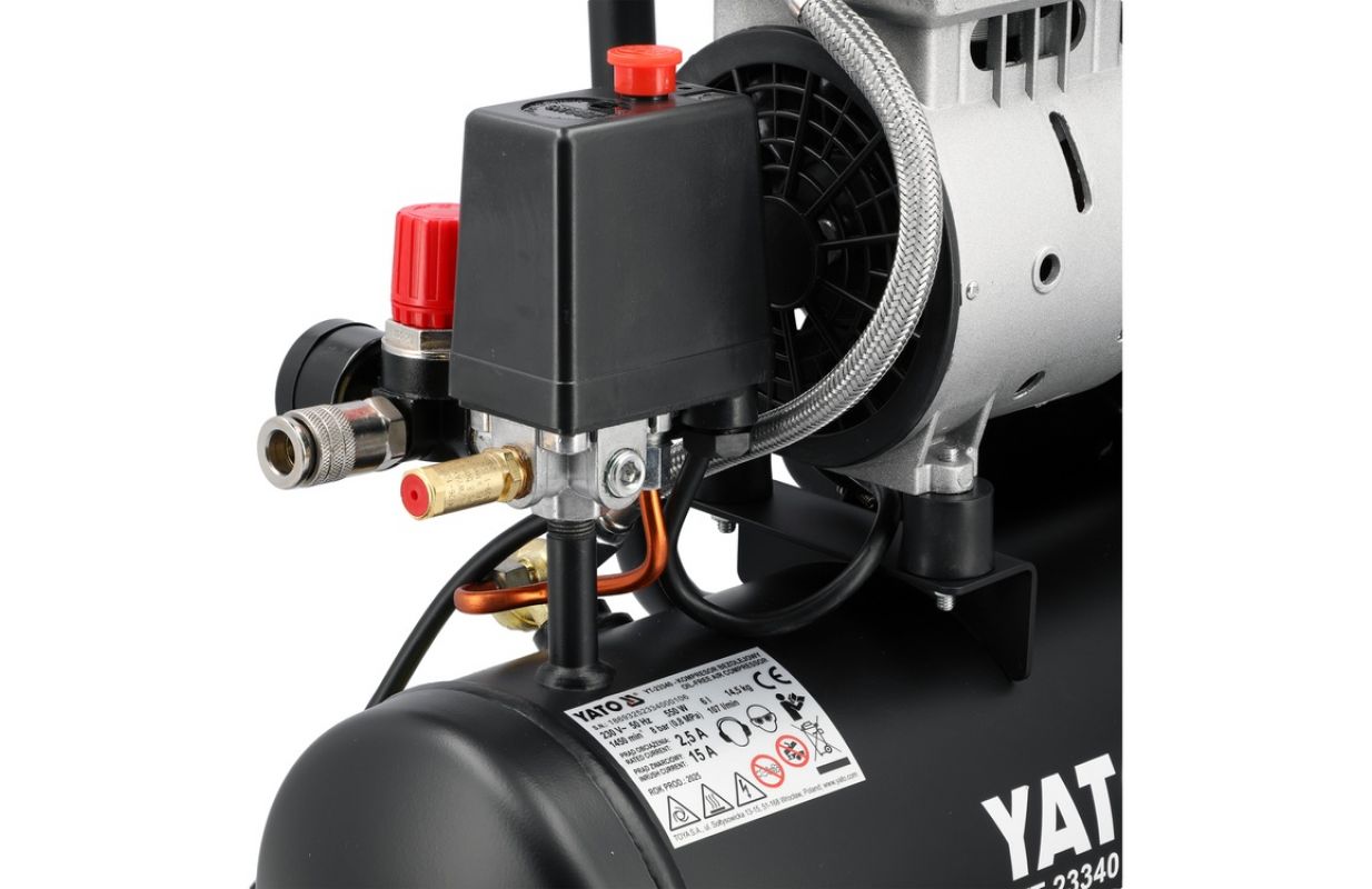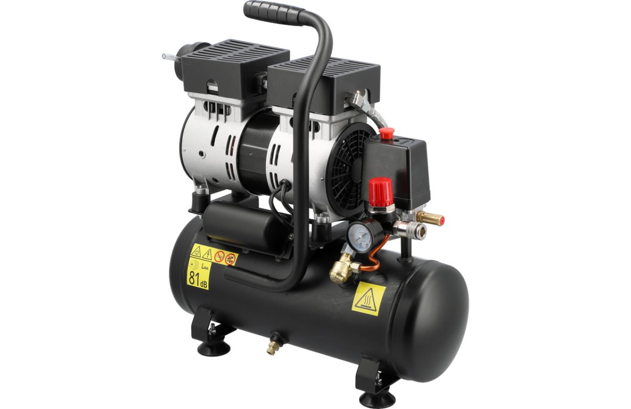 The maximum working pressure of 8 bar (0.8 MPa) allows for use with popular pneumatic accessories – pneumatic guns, pumps, airbrushes, or wallpaper staplers. The compact design makes the equipment suitable for garages, mobile services, and home tasks.