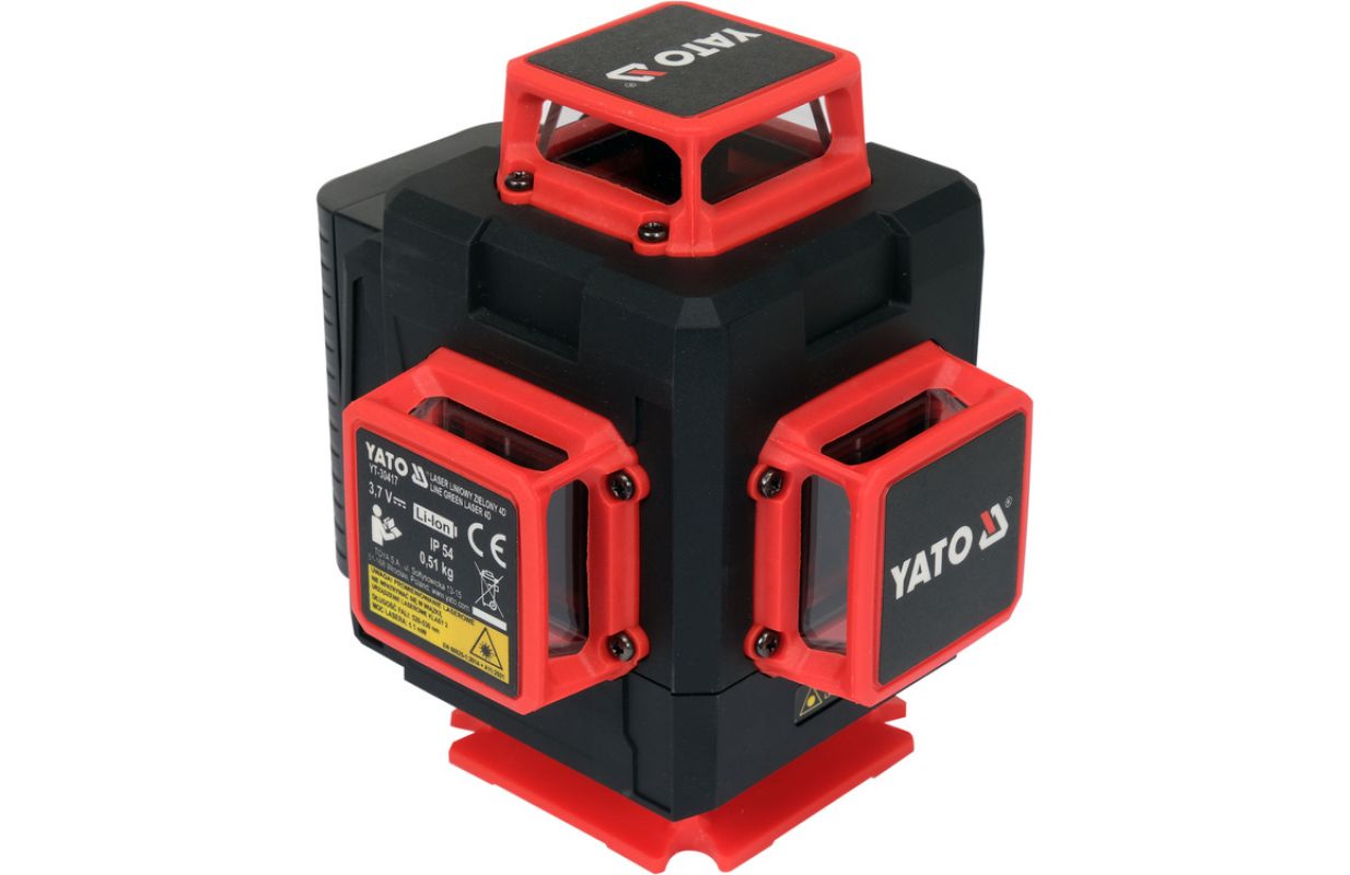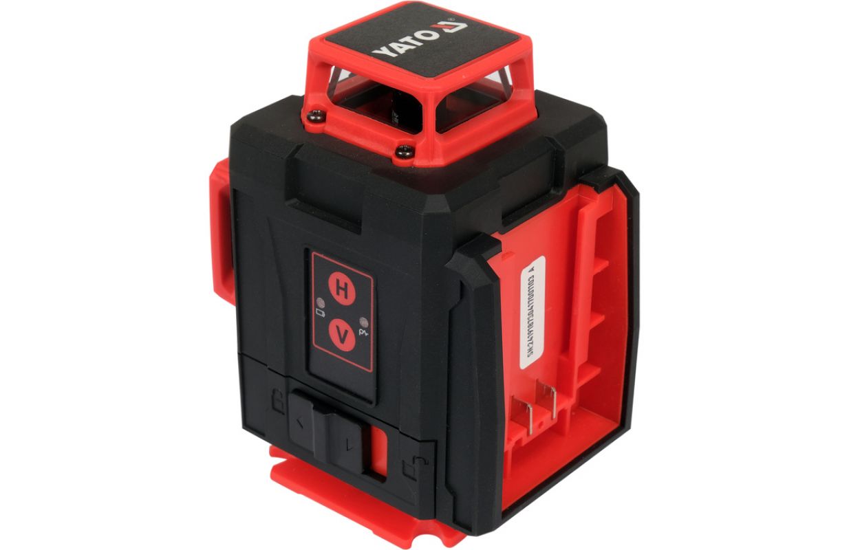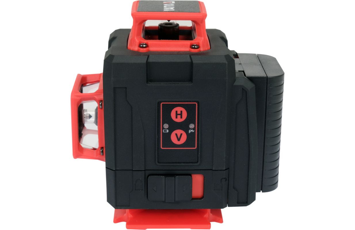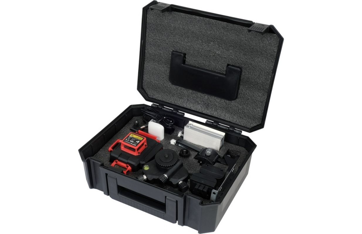The laser works with a rechargeable battery with an increased capacity of as much as 4000 mAh. The presence of two rechargeable batteries in the set allows uninterrupted operation for a longer period of time. The housing made of durable plastic with IP54 protection class, with rubber anti-slip pads, guarantees dustproofness and resistance to drops falling from any direction.