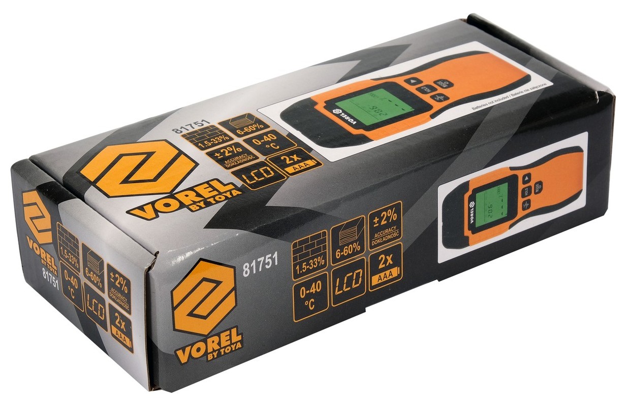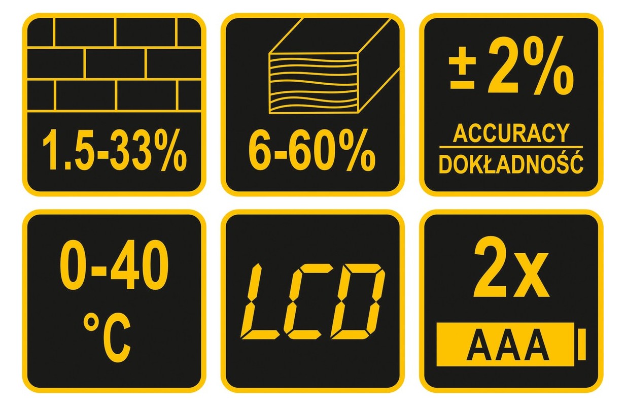 measuring range of wood from 6 to 60%, building materials from 1.5 to 33%