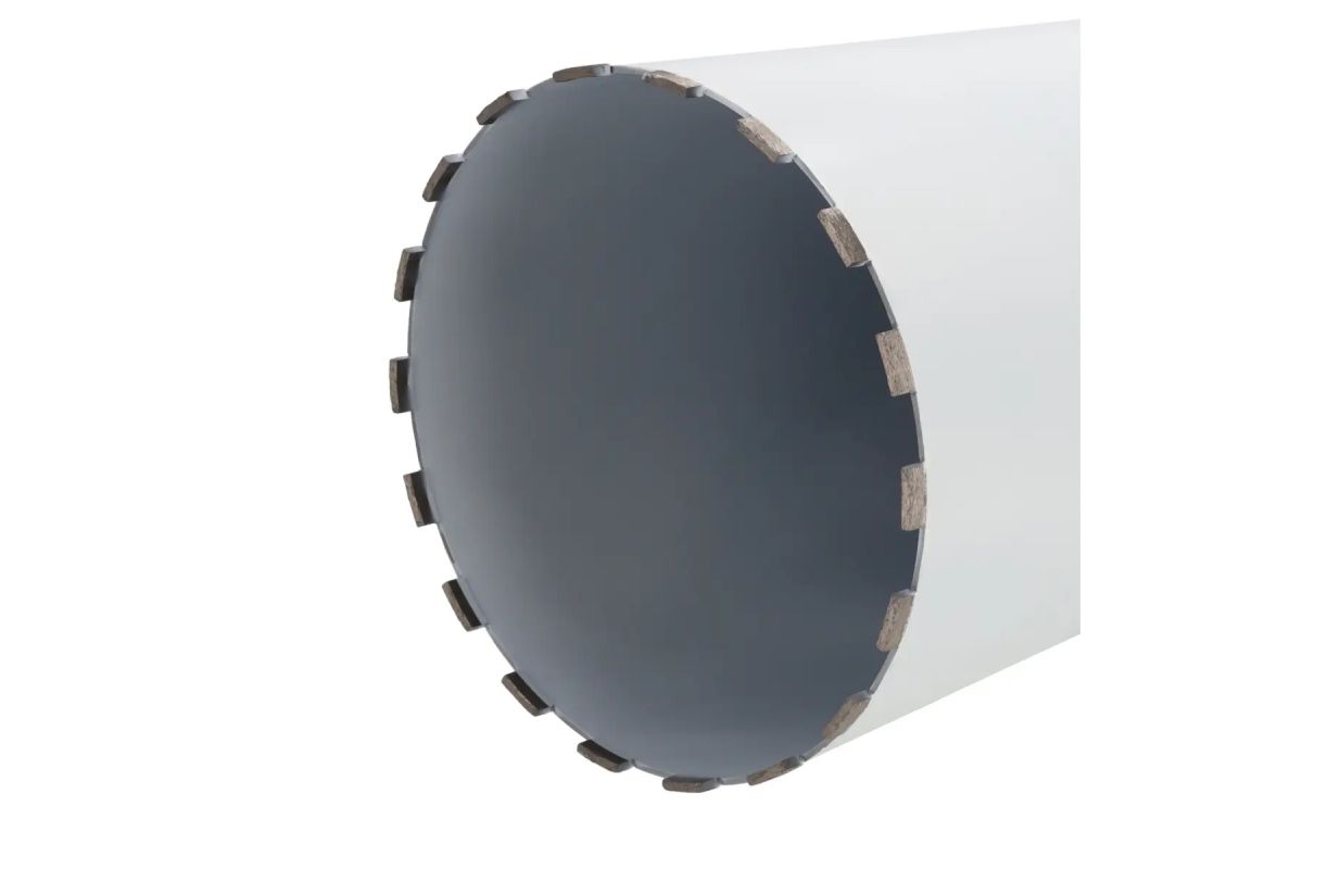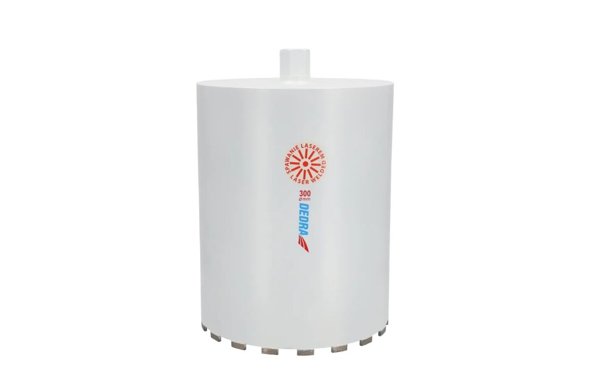 Diamond core drill for drill bits with a diameter of 300 mm and a length of 400 mm. It is designed for drilling in hard materials such as concrete, reinforced concrete, masonry and brick. The diamond teeth are laser-linked to the crown body, which increases the lifetime of the crown. The hexagonal shank on the crown facilitates its fastening.