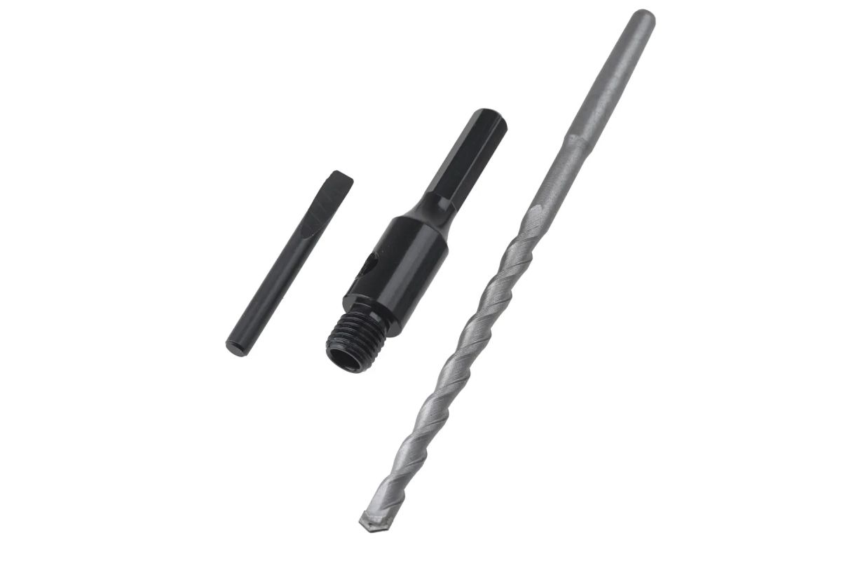 Diamond drill for concrete, stoneware, stone. The diamond-coated segments make it easier to drill holes in hard materials such as concrete, stoneware and natural stone. The pilot drill bit makes drilling smooth and precise. The diamond core cutters are compatible with the H1224 (SDS PLUS shank), H1225 (HEX hex shank) and H1226 (SDS PLUS shank) pilot drill bits. The core cutter comes with a pilot drill bit, HEX shank and a drift pin.
