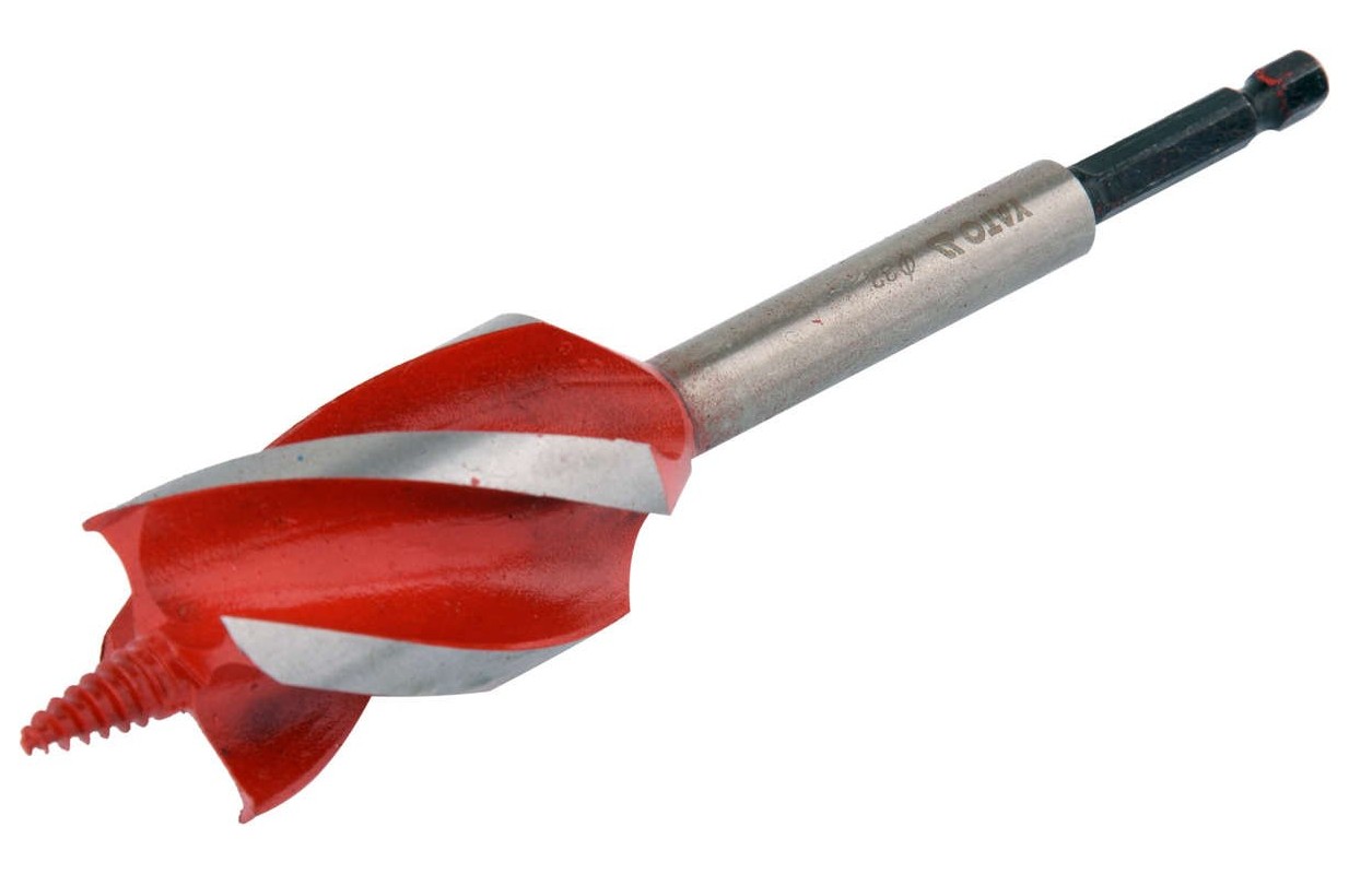 A 4-blade drill bit that leaves even and smooth hole edges and facilitates perpendicular drilling thanks to its special helix design.