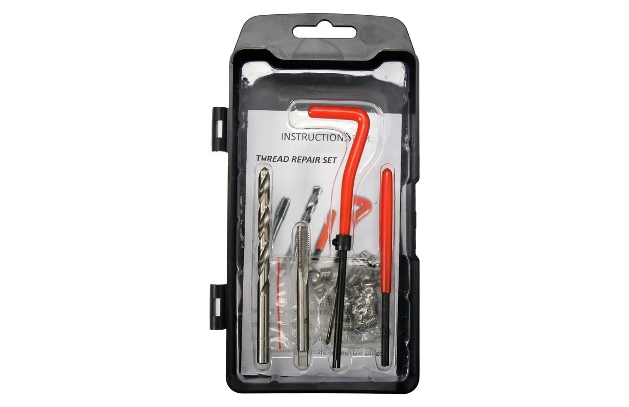 | Set includes | single-stage tap to create a thread for a new insert, Spiral x25 insert (M6x1.0), knob for screwing in spiral inserts, strike, drill for reaming damaged thread, |